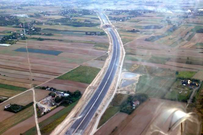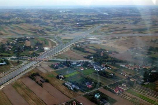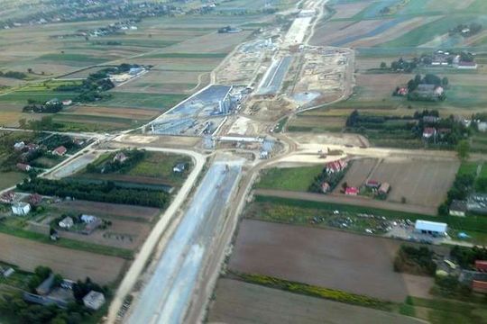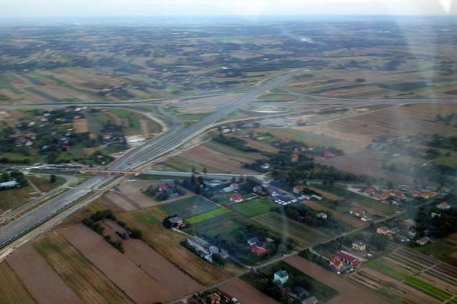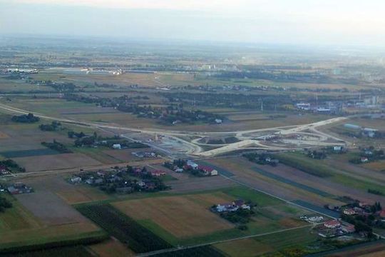 Odcinek drogi między Jastkowem, a Lublinem z widocznymi w tle pracami budowlanymi (wlot do Lublina)