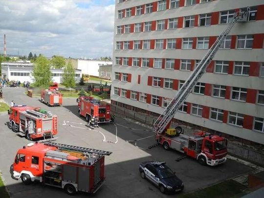 Służby wchodzące w skład zamojskiego Miejskiego Zespołu Zarządzania Kryzysowego przyjechały w środę do szpitala „papieskiego” w Zamościu. Akcja rozpoczęła się o godzinie 13 i trwała dwie godziny. W manewrach wzięło udział pięć zastępów Państwowej Straży Pożarnej, sześć zastępów OSP, ratownicy medyczni, policjanci, strażnicy miejscy, Zespół Szkół Mundurowych, Miejski Zakład Komunikacji oraz Ośrodek Sportu i Rekreacji. Scenariusz przewidywał również, że w szpitalu mogła znajdować się bomba. Na miejscu był także policyjny negocjator, który miał za zadanie dowiedzieć jak najwięcej o miejscu podłożenia ładunku.– Dzięki ćwiczeniom chcemy udoskonalić współdziałanie jednostek ochrony przeciwpożarowej z personelem szpitala, pogotowiem ratunkowym, policją i innymi służbami – wyjaśnia mł. bryg. Andrzej Szozda z Komendy Miejskiej Państwowej Straży Pożarnej w Zamościu. Jak dodaje, akcja pomoże sprawdzić przejezdność dróg pożarowych, kierunki prowadzenia ewakuacji oraz sposoby gaszenia pożarów wewnątrz szpitala. Są to standardowe ćwiczenia, które mają sprawdzić, jak poradzą sobie służby w takiej sytuacji i przygotować je na różne ewentualności.