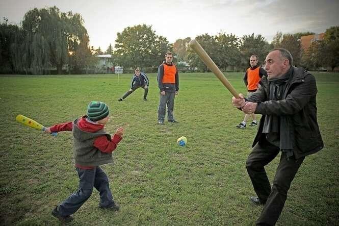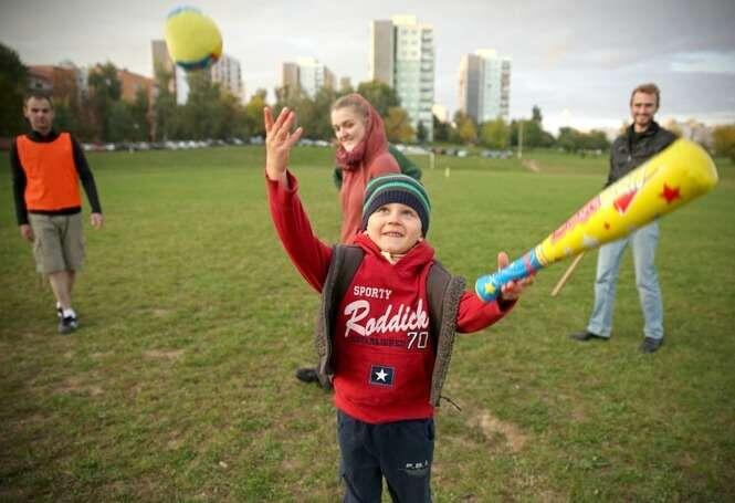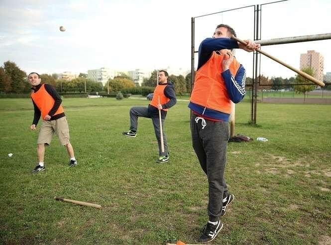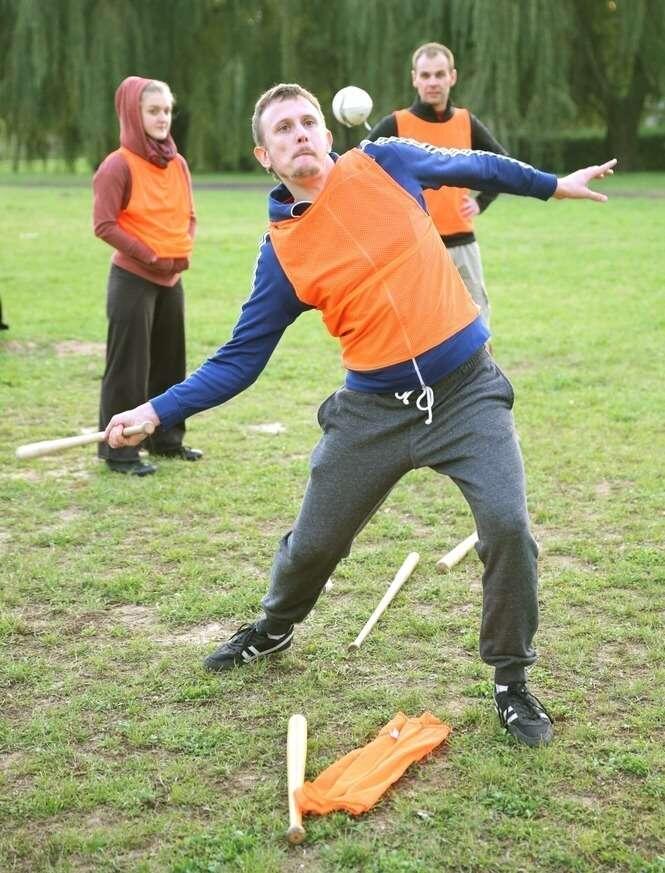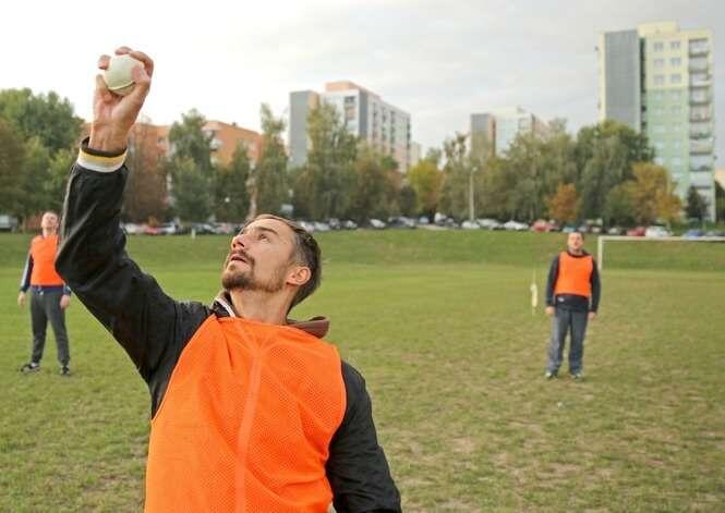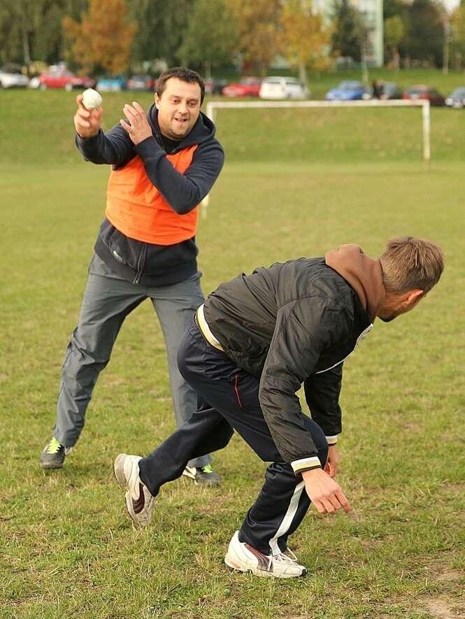 Trening przed Turniejem gry w Piłkę Palantową w randze Mistrzostw Polski. Lublin reprezentują muzycy, prawnicy, aktorzy i bankierzy.