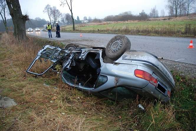 Do wypadku w Samoklęskach doszło we wtorek po godz. 5 rano. Kierowca hondy na zakręcie stracił panowanie nad pojazdem i uderzył w przydrożne drzewo. Auto obróciło się i wpadło do rowu.