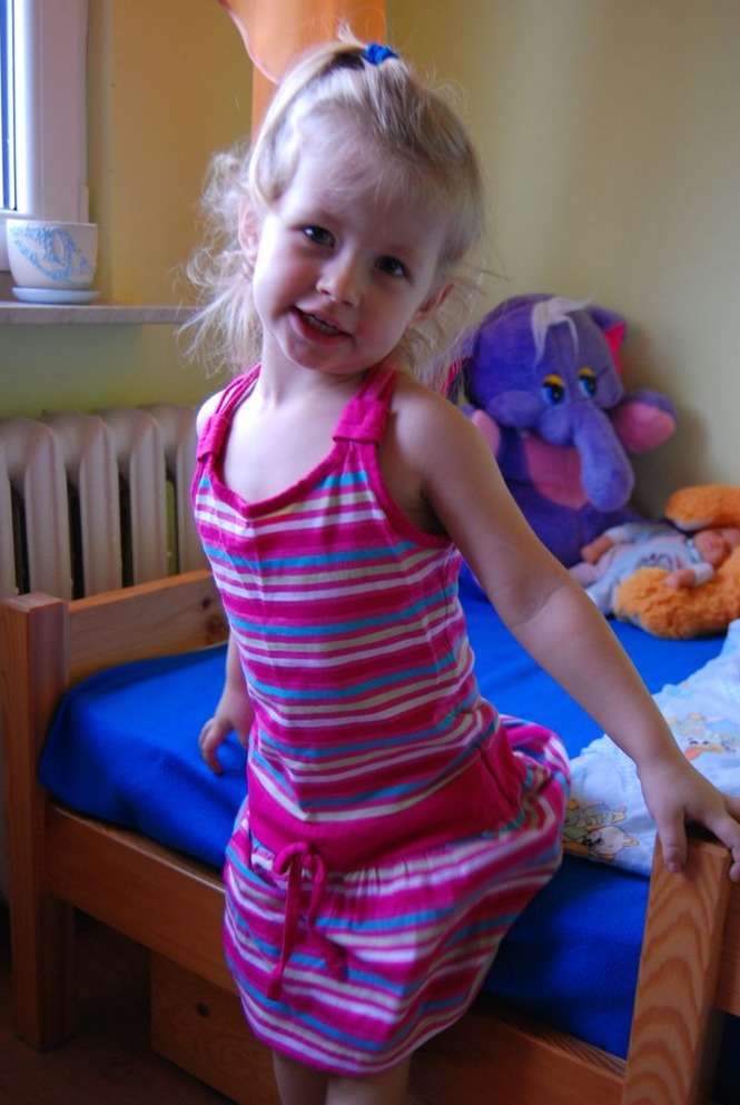 Hania Paterek, 3 lata. Lubi lalki i pluszowe króliki. W wolnym czasie uwielbia śpiewać i rysować. Jest zawsze wesoła i uśmiechnięta.