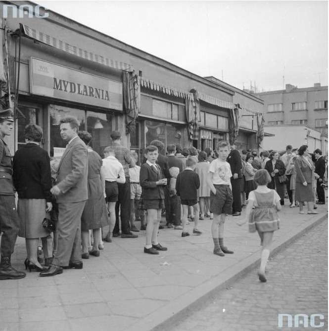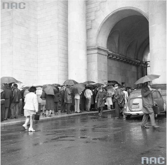 Po mleko, mięso, cukier, węgiel, czy bilety do kina. Czyli, pół życia w kolejce... Fot. Narodowe Archiwum Cyfrowe