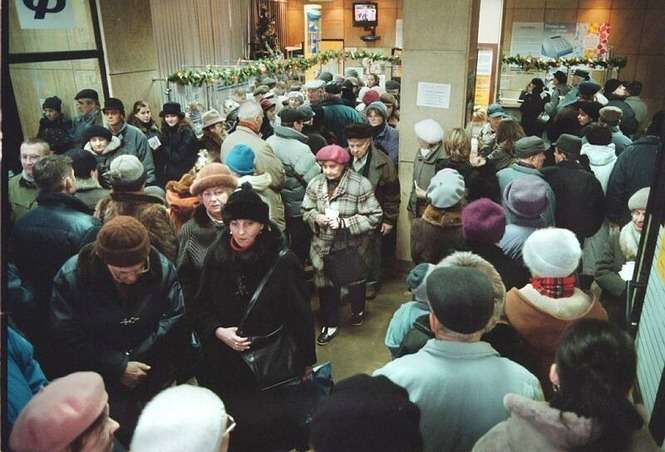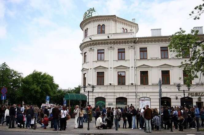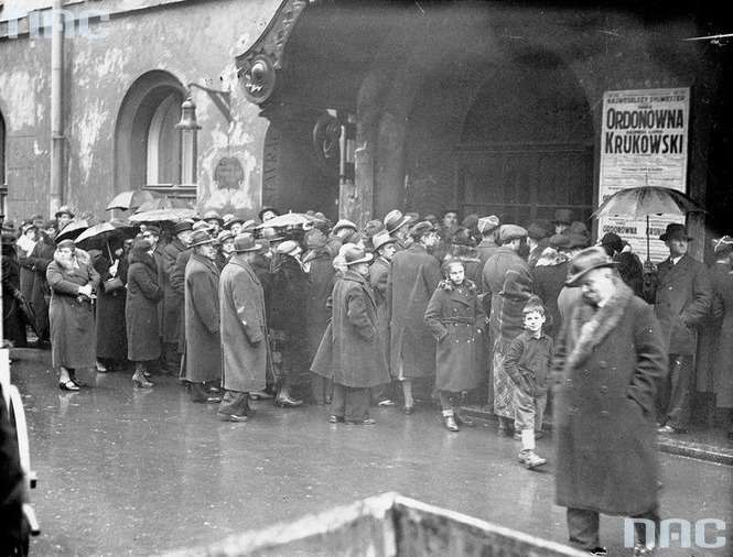 Kolejka do kasy prowadzącej przedsprzedaż biletów na koncert Jana Kiepury.