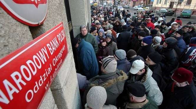 Kolejka przed siedzibą NBP w Lublinie. Kilkaset osób ustawiło się w nocy , by kupić nową monetę 20-złotową.