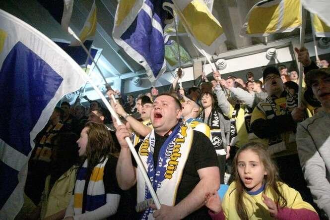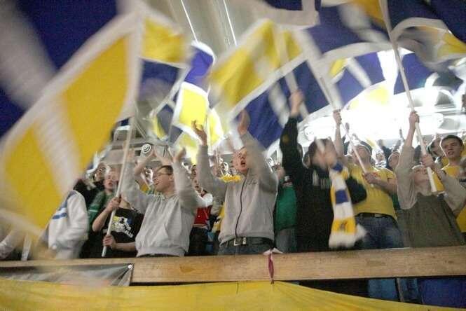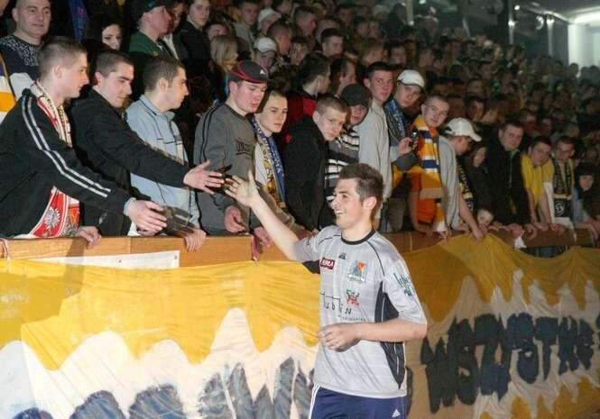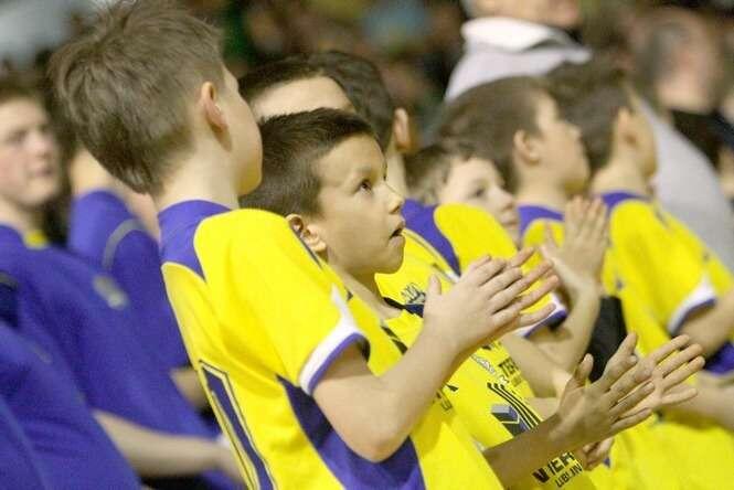 Feta w hali MOSiR. W piątkowej prezentacji Motoru Lublin przed rundą wiosenną wzięło udział kilkuset kibiców "żółto-biało-niebieskich". Fot. Maciej Kaczanowski.