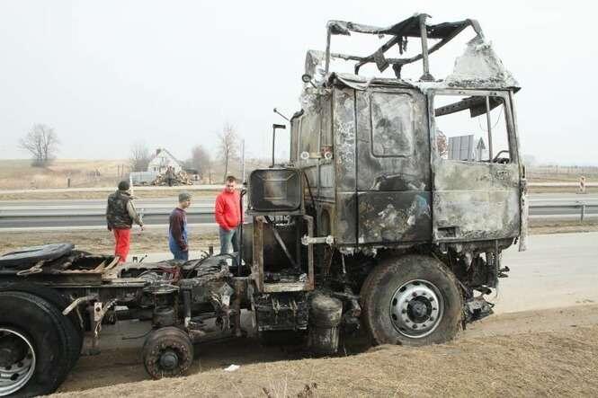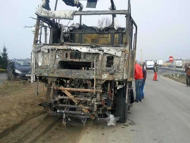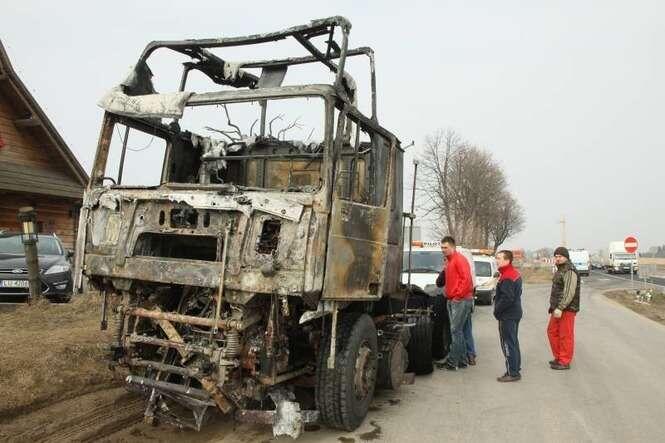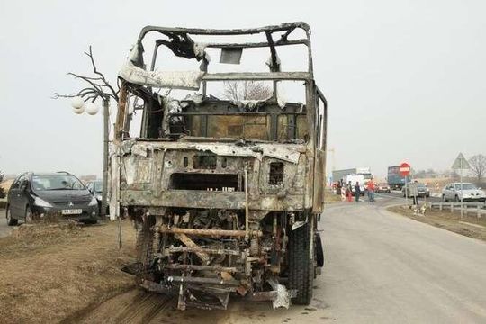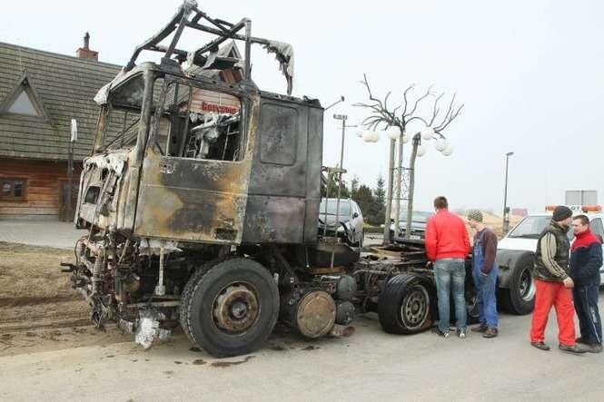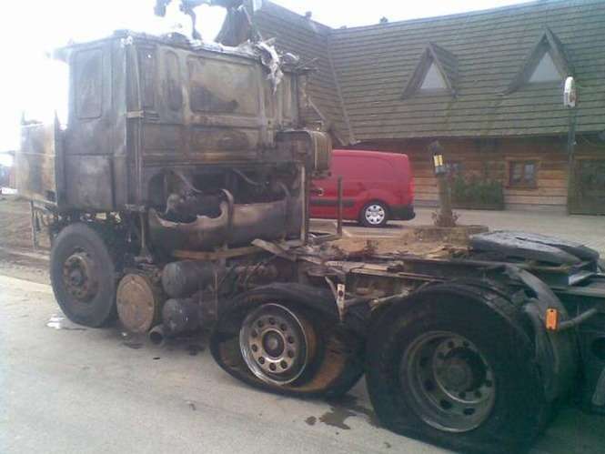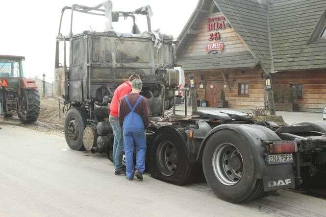 Jak udało nam się ustalić. Samochód ciężarowy przystosowany był do przewozu maszyn budowlanych. W chwili, gdy doszło do pożaru był pusty. Niczego nieświadomy kierowca został ostrzeżony przez cb radio. Wtedy uciekł z kabiny, odczepił naczepę i wraz z kierowcą innego ciągnika, udało im się odciągnąć lawetę