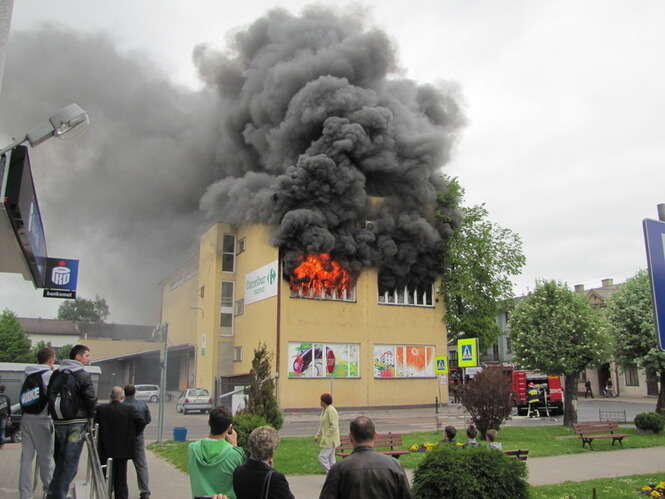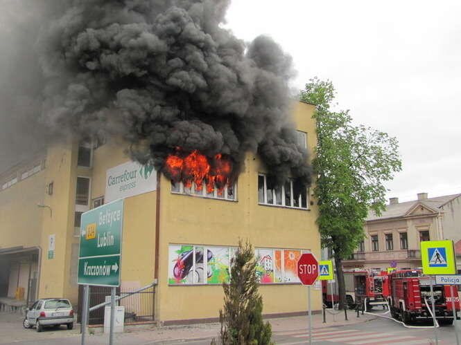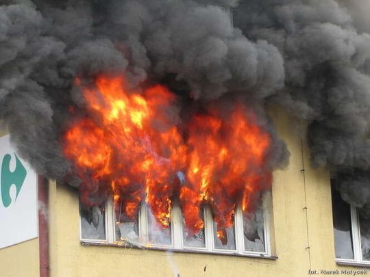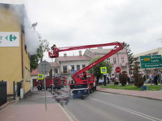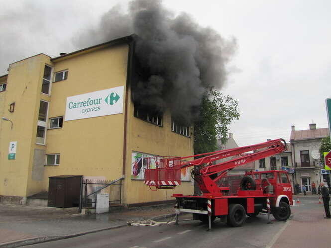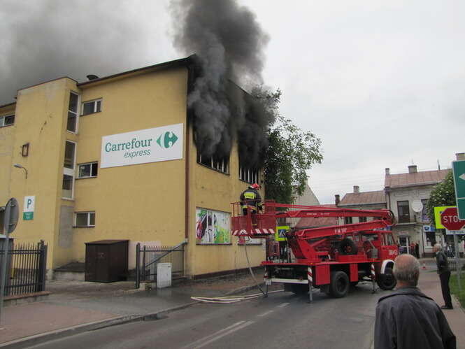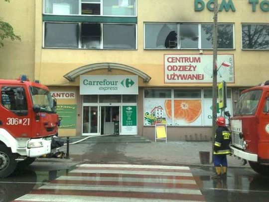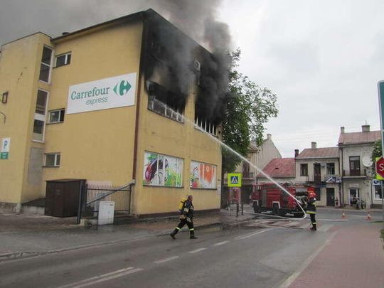 Pożar w Carrefour w Bychawie