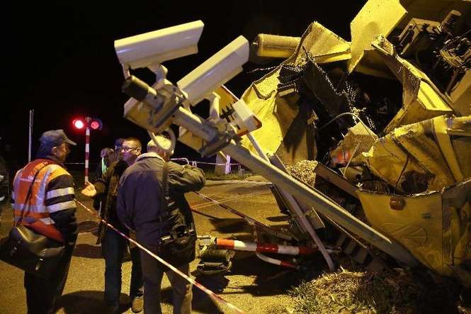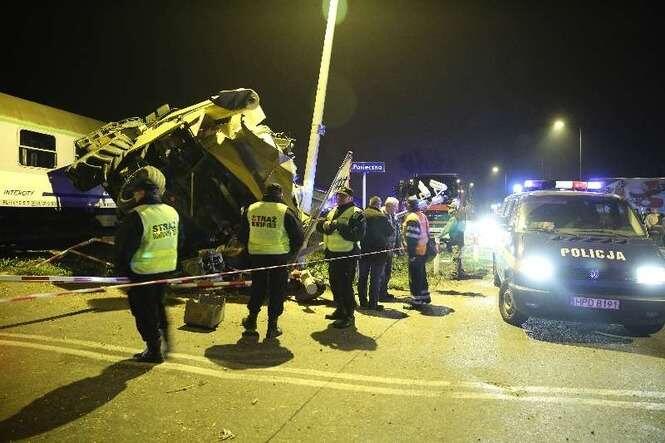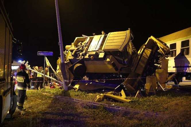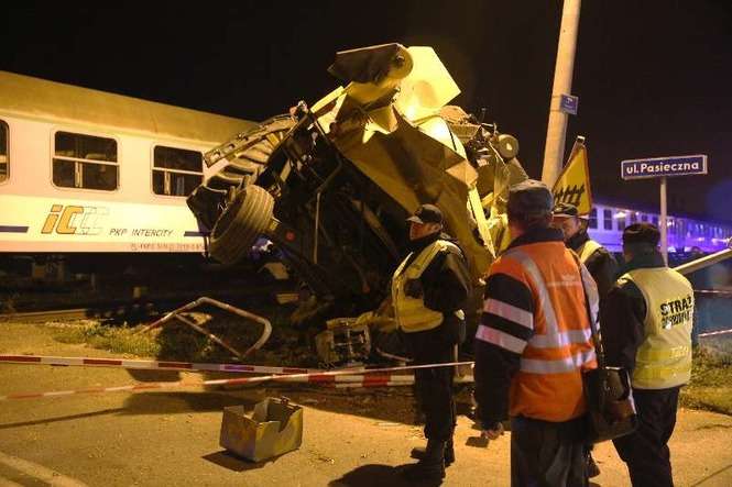 W Zemborzycach pociąg relacji Przemyśl - Bydgoszcz uderzył w kombajn, który znajdował się na torach. Fot. Maciej Kaczanowski