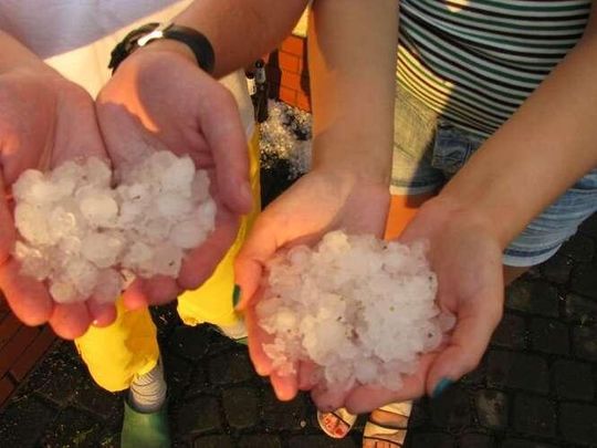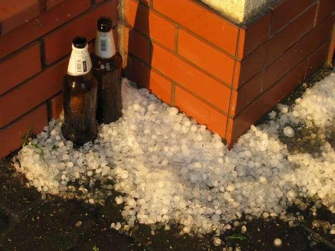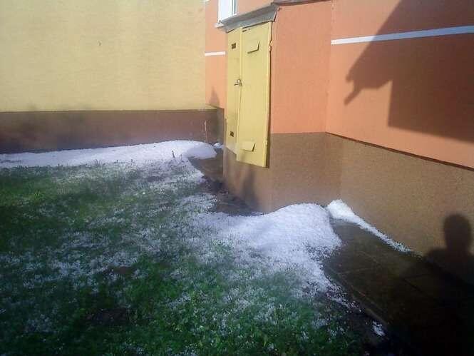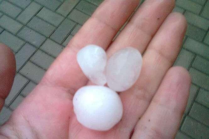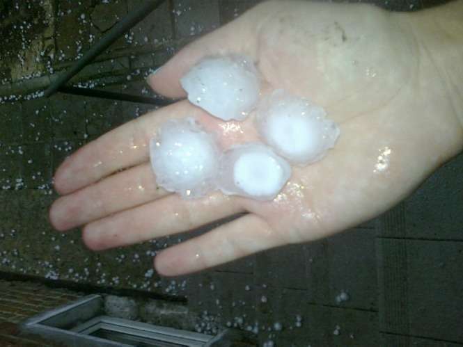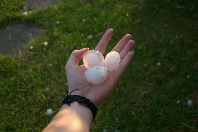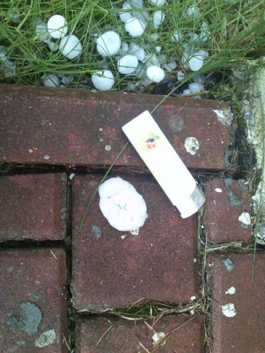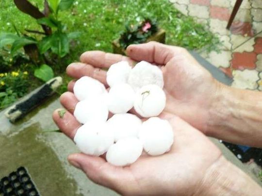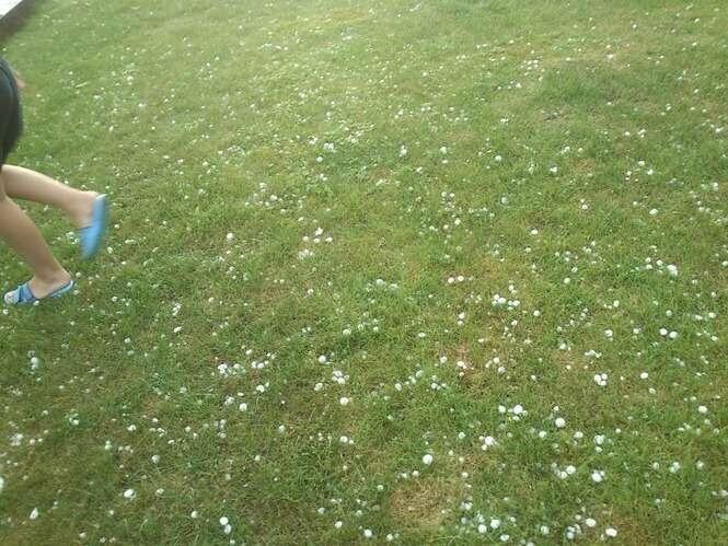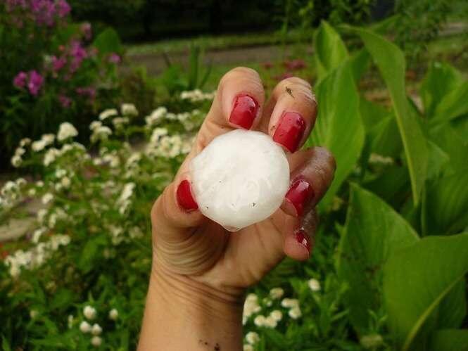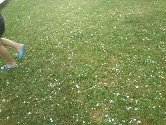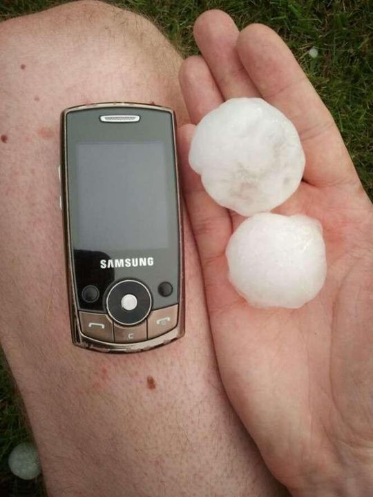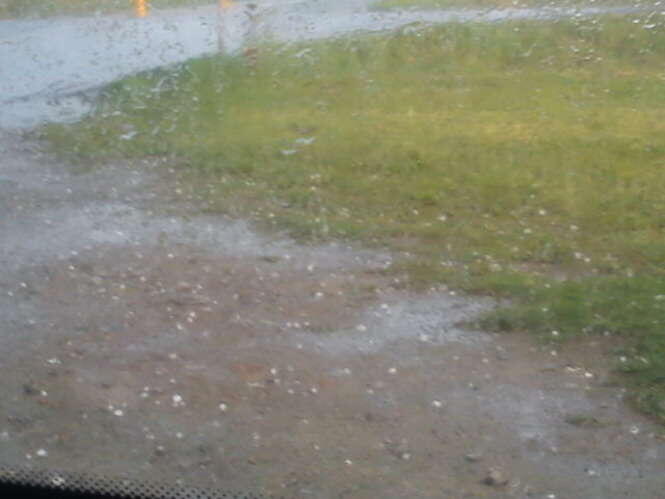 Zdjęcia robione 20 min po burzy więc kulki lodowe trochę się rozpuściły. W czasie gradobicia były wielkości orzechów włoskich, a nawet jajek kurzych.
