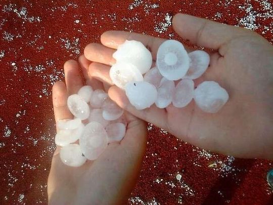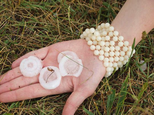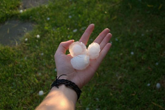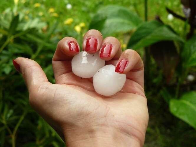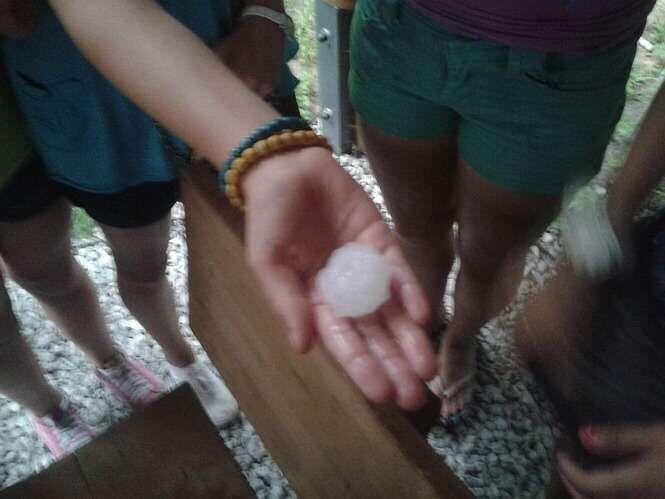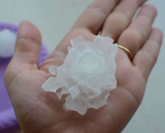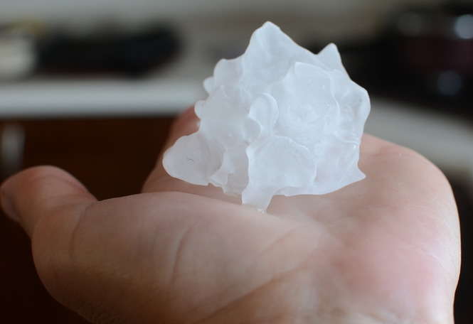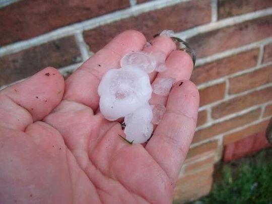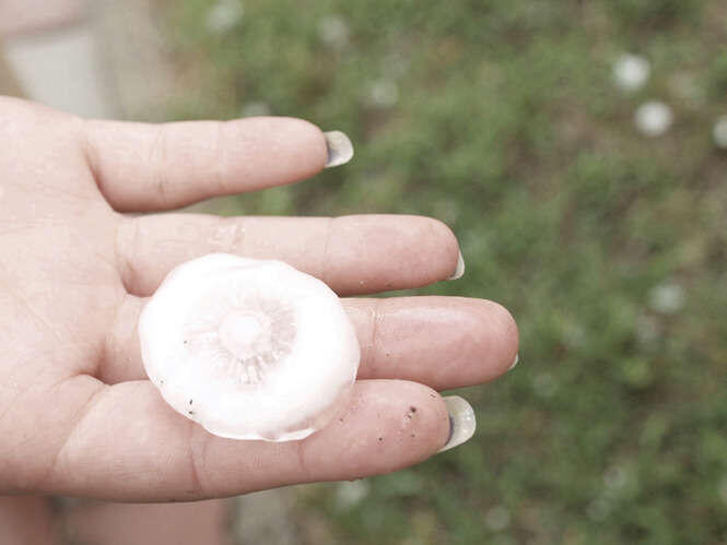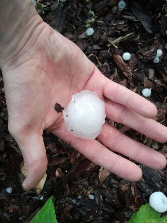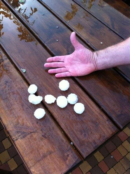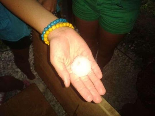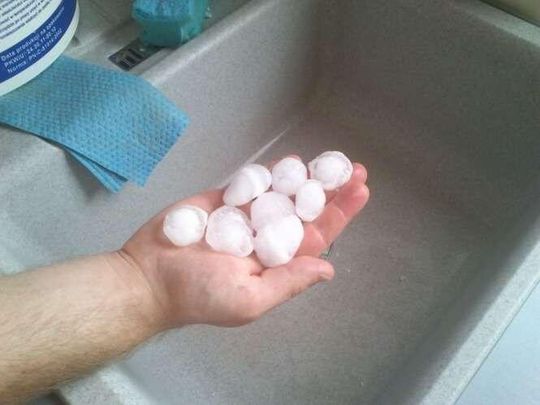 Zdjęcia robione 20 min po burzy więc kulki lodowe trochę się rozpuściły. W czasie gradobicia były wielkości orzechów włoskich, a nawet jajek kurzych.