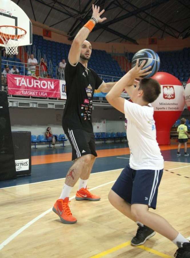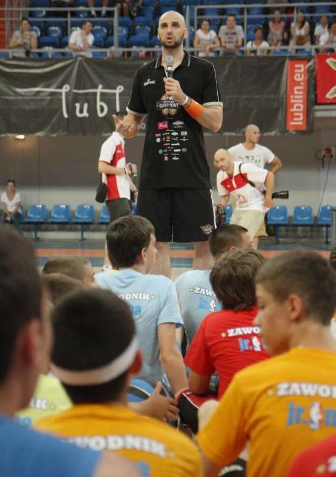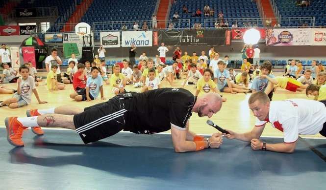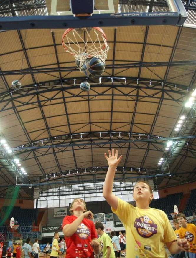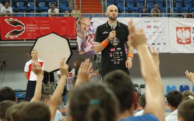 W lubelskiej hali Globus odbył się Marcin Gortat Camp 2012. Koszykarz Phoenix Suns prowadził trening dla dzieci i młodzieży. Środkowy "Słońc" odwiedzi jeszcze Płock, Krosno, Kraków, Olsztyn Siedlce i Warszawę gdzie zaplanowano szkolenie najlepszych młodych koszykarzy z kraju. Fot: Maciej Kaczanowski