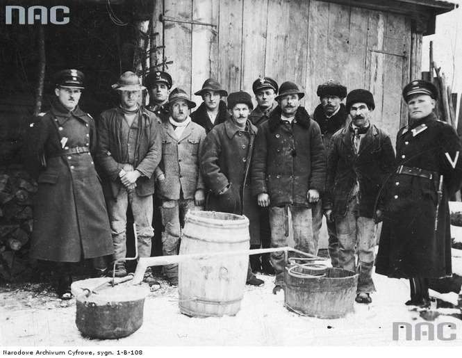 Likwidacja nielegalnej bimbrowni przez funkcjonariuszy Policji Państwowej i Straży Granicznej w Krościenku