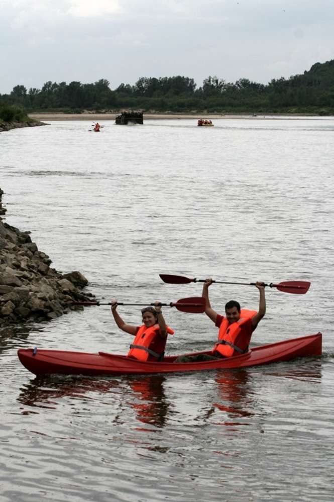 Uczestnicy wyruszyli z Kępy Choteckiej i po przepłynięciu ok. 16 kilometrów kończyli trasę spływu w nowej przystani w Kazimierzu Dolnym. Tutaj odbył się piknik. – Trasa jest wymagająca i trzeba było sporo wiosłować. Ale wrażenia wspaniałe – chwali Joanna Zastawna, która płynęła kajakiem z córką Ulą.W sumie w spływie wzięło udział ponad 150 osób. Nie odstraszyło ich ani to, że tylko pierwszych 100 osób płynęło bezpłatnie, ani nawet pochmurne niebo.Imprezę zorganizowała Lubelska Regionalna Organizacja Turystyczna z Urzędem Marszałkowskim, Urzędem Miasta w Kazimierzu i firmą Dwa Żywioły. Chodziło o promocję aktywnych form wypoczynku, które w Kazimierzu nie są jeszcze tak popularne. – Zauważyliśmy, że miasteczko owszem jest oblegane przez turystów, ale Wisła już nie. Postanowiliśmy też przełamać stereotyp, że Wisła jest rzeką nieokiełznaną – mówi Dorota Lachowska, dyrektor LROT.Dodaje, że spływ to okazja do podejrzenia z bliska dzikiej przyrody. – Czapla siwa, którą spotkaliśmy na trasie z ciekawością przyglądała się kajakom – mówi Lachowska.Spływy Wisłą to fantastyczny produkt turystyczny – chwali Elżbieta Wąsowicz-Zaborek, wiceprezes Polskiej Organizacji Turystycznej, która również płynęła. – Poza tym cieszę się, że miałam okazję obejrzeć nową przystań w Kazimierzu, która na pewno pomoże w popularyzacji tego typu aktywności.