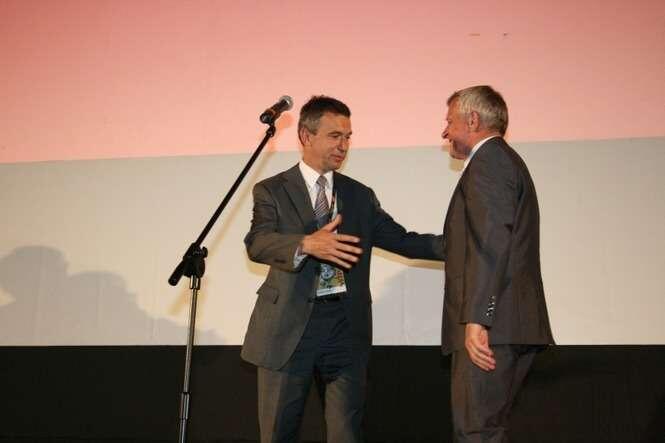 Burmistrz Kazimierza i wójt Janowca w tradycyjnym uścisku symbolizującym połączenie dwóch brzegów Wisły