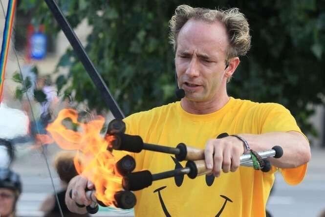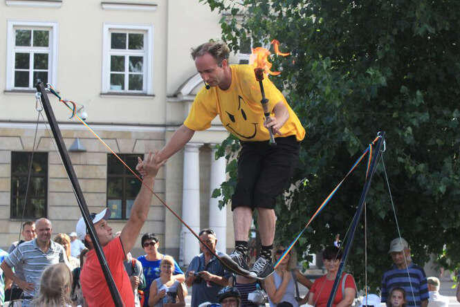 - Cześć, Jestem Bob. Jestem z Kanady. Zapraszam Was na mój uliczny show, nad którym pracowałem przez ostatnie 15 lat i wciąż go rozwijam. Oczekujcie żonglerki, wyginania ciała i innych atrakcji. Przygotowałem dwa różne finały i dość numerów na trzy występy. Jedyna rzecz, która pojawia się zawsze, to świetna zabawa - tak swój show zapowiadał Bob Carr, którego można było zobaczyć we wtorek na placu Litewskim.