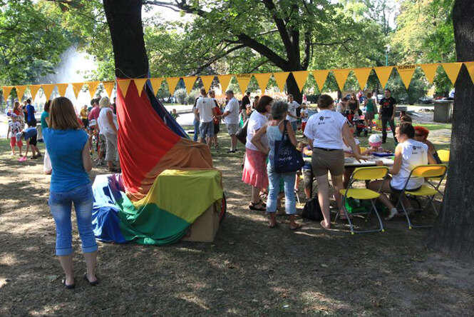 Kilkanaście metrów dalej rozlokowało się Klanzowe Miasteczko Zabaw Niezwykłych, gdzie dzieci mogły przekonać się na własnej skórze co znaczy być cyrkowcem.