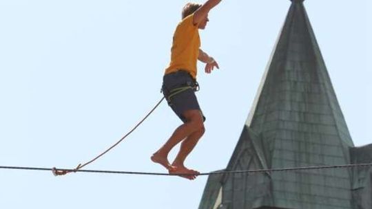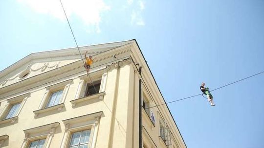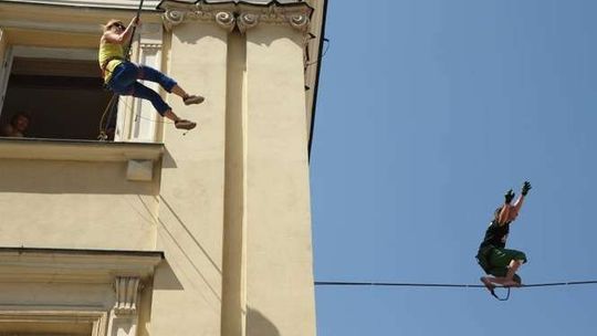 Wyczyny miłośników chodzenia wysoko nad ziemią na elastycznych linach można podziwiać od czwartku do niedzieli. W weekend uczestnicy będą ćwiczyć jeszcze wyżej, bo na linach rozpiętych między wieżowcami przy ul. Wieniawskiej.