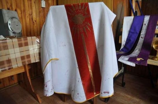 Uciekającego złodzieja zobaczył we wtorek nad ranem mieszkaniec powiatu. Złodziej szedł w kierunku ogródków działkowych. Niósł ze sobą płachtę, z której wystawały przedmioty podobne do naczyń liturgicznych. Mężczyzna był zakrwawiony. Świadek zawiadomił policję.
