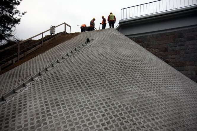 – Przebudowaliśmy przyczółki oraz przęsło wiaduktu, dostosowując je w ten sposób do obecnych wymogów – mówi Lesław Ostapko, kierownik budowy z firmy Skanska, która prowadziła inwestycję. – Ponadto zabudowaliśmy tzw. stożki skarpowe, wykonaliśmy tam schody, nową instalację odwodnienia wiaduktu i powłoki antykorozyjne na konstrukcji stalowej. Wymieniono tłuczeń, a stare drewniane podkłady zostały zastąpione nowymi.