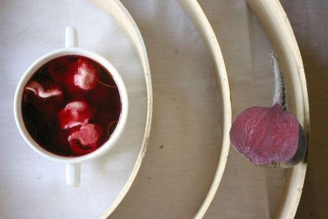 Składniki: pół kilograma buraków, 2 marchewki, 1 pietruszka, pól selera korzeniowego, 1 średni por, 2 cebule, 8 dag suszonych prawdziwków, sok z połowy cytryny, 2 ząbki czosnku, 1 łyżeczka świeżego chrzanu, 2 listki laurowe, po 3 ziarna pieprzu i ziela angielskiego, sól, cukier albo miód, kwas buraczany.