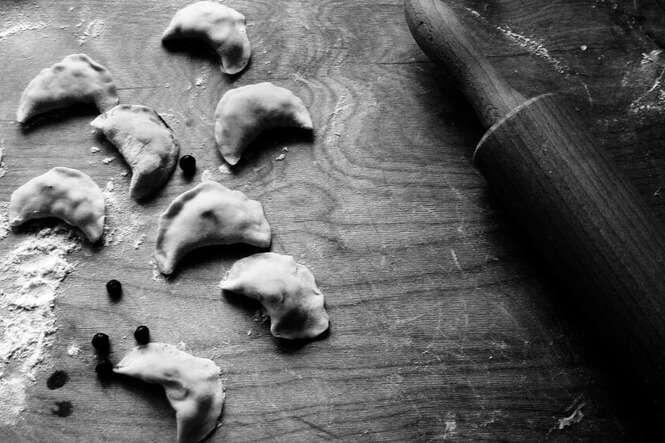 Wykonanie: kapustę ugotować z grzybami (namoczonymi na noc) i olejem. Na oleju przesmażyć cebulę pokrojoną w kostkę, dodać odcedzoną kapustę i grzyby. Doprawić świeżo i grubo zmielonym pieprzem. Wystudzić i zmielić na grubym sitku. Można posiekać tasakiem. Z mąki, oleju, wody i soli wyrabiać ciasto tak długo, aż będzie elastyczne i gładkie. Rozwałkować.