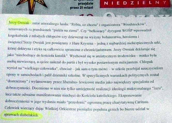 Prawie 1000 komentarzy, ponad 56 tysięcy odsłon zdobył materiał o nietypowych ulotkach, które pojawiły się w kościele w Poniatowej. Na stoliku w kościele św. Ducha podczas mszy świętej wyłożono ulotki ostrzegające przed datkami na WOŚP. „Człowiek wierzący, dając Wielkiej Orkiestrze pieniądze popełnia grzech, bo bierze udział w sprawach diabelskich” - mogli przeczytać parafianie. Przeczytaj cały artykuł: Ulotki w kościele w Poniatowej: Dając pieniądze na WOŚP popełniasz grzech