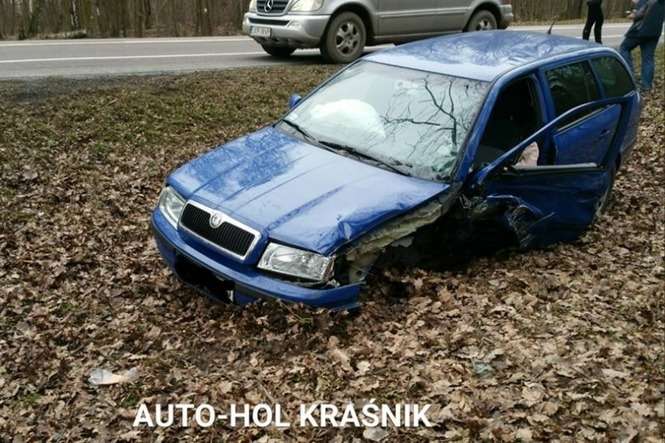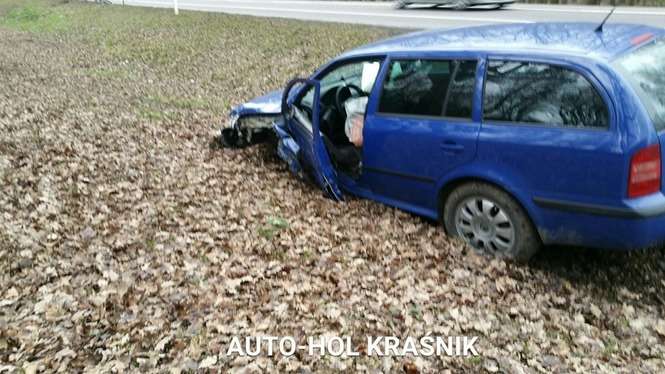 Kierujący skodą octavią zasnął za kierownicą i wjechał do rowu. 32-latek z gminy Dzierzkowice trafił do szpitala.