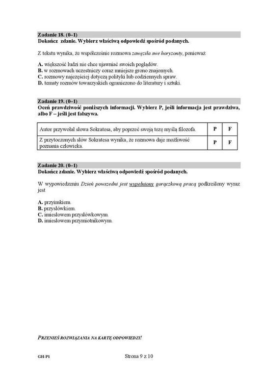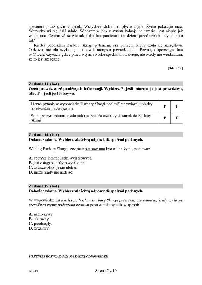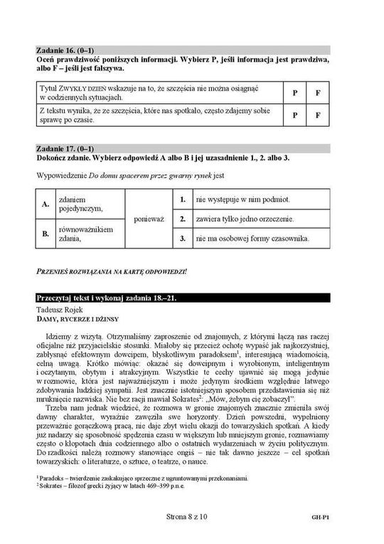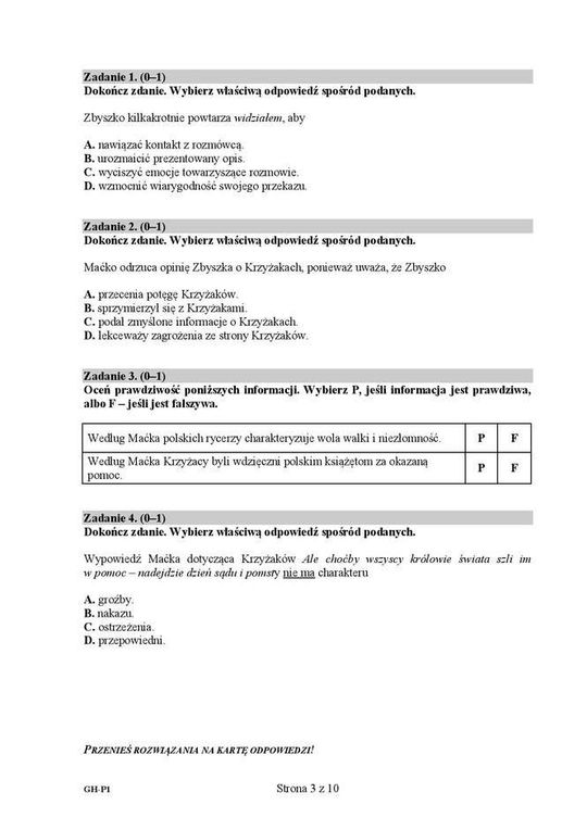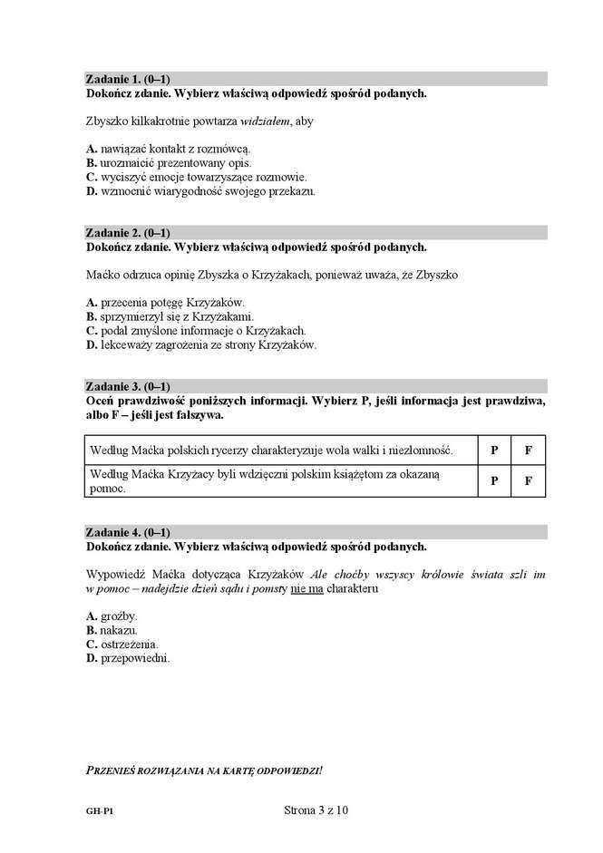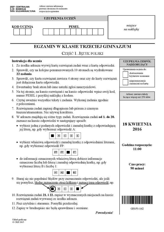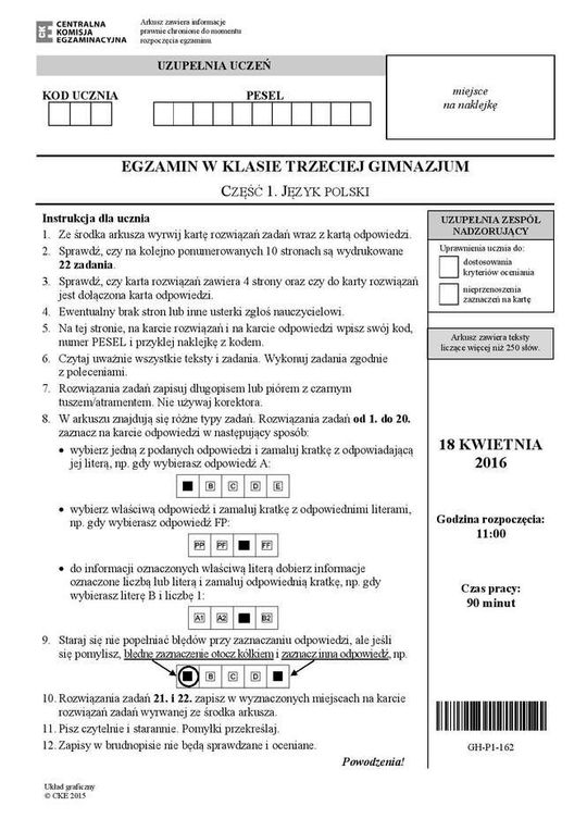 Egzamin gimnazjalny 2016 - arkusze język polski
