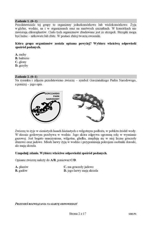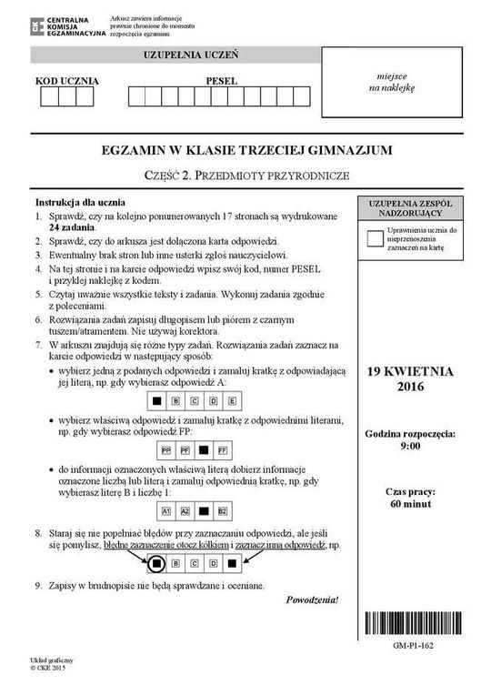 Egzamin gimnazjalny 2016: przyroda