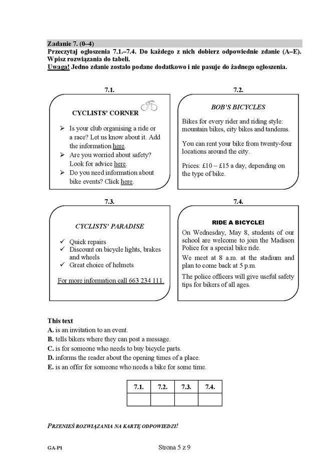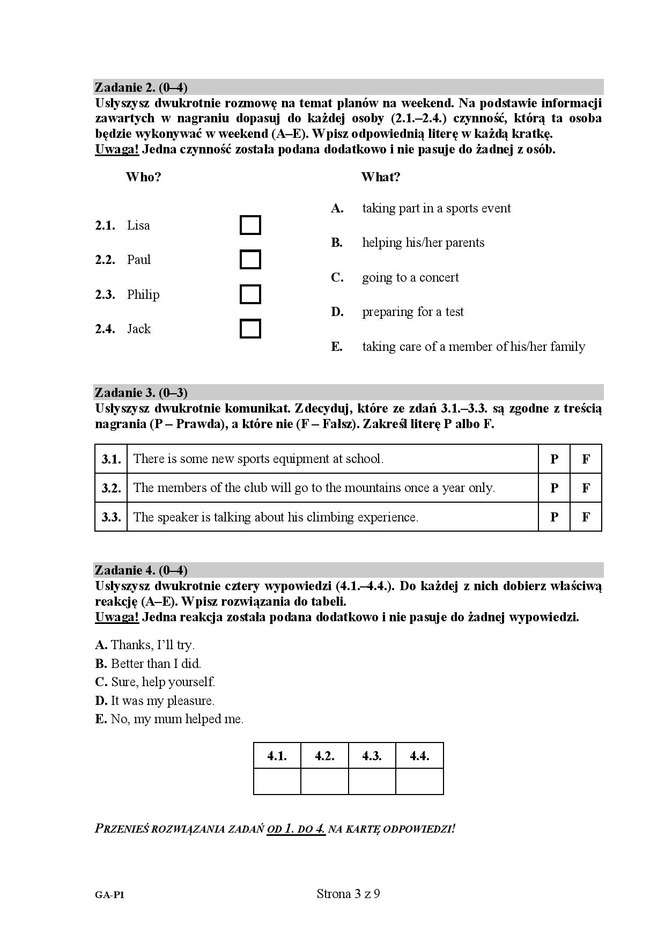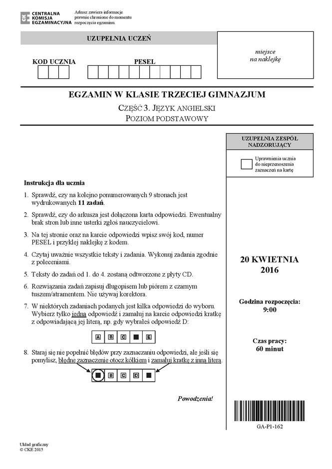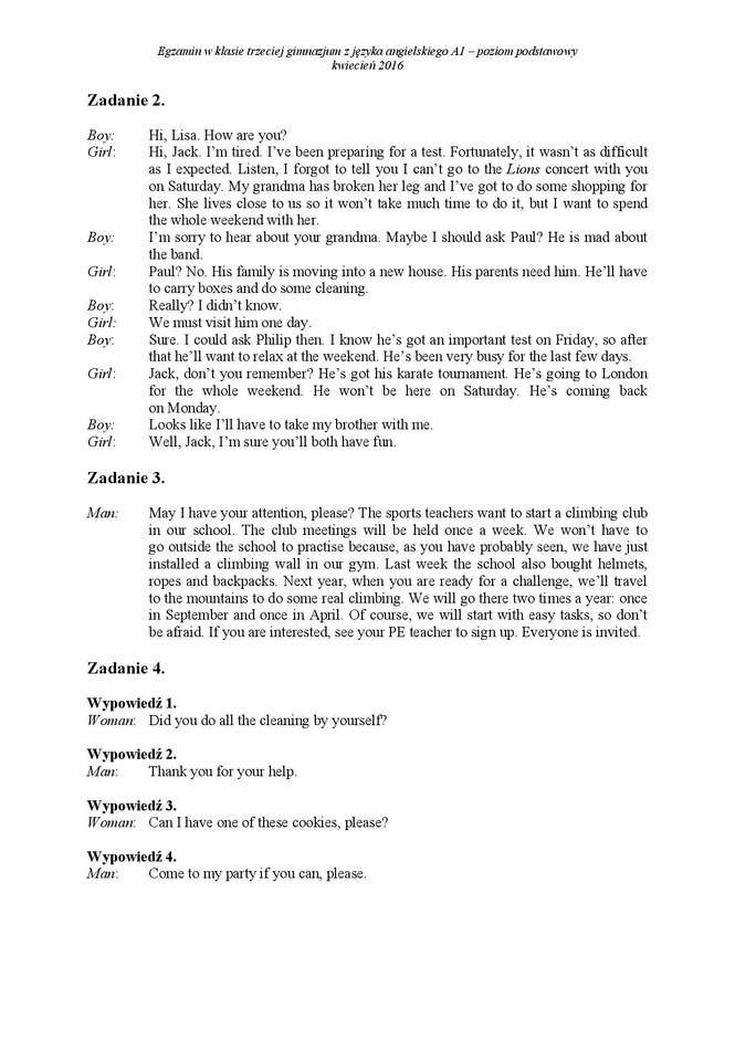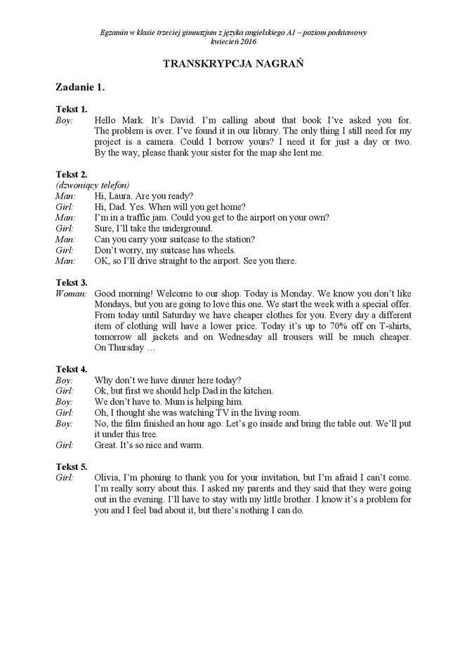Egzamin gimnazjalny 2016 - arkusze język angielski + transkrypcja