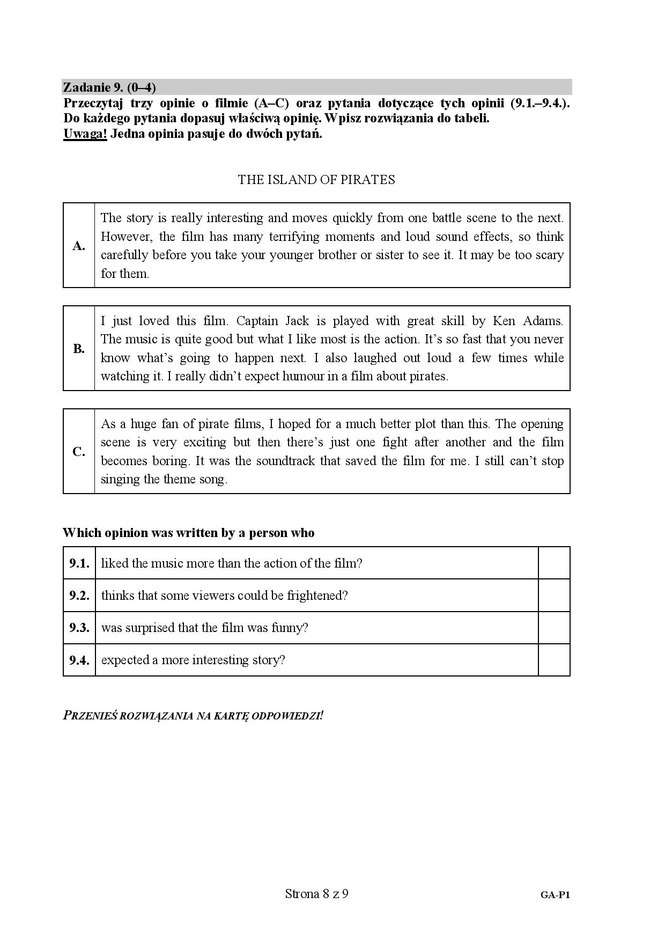 Zadanie 9.1. - odpowiedź C