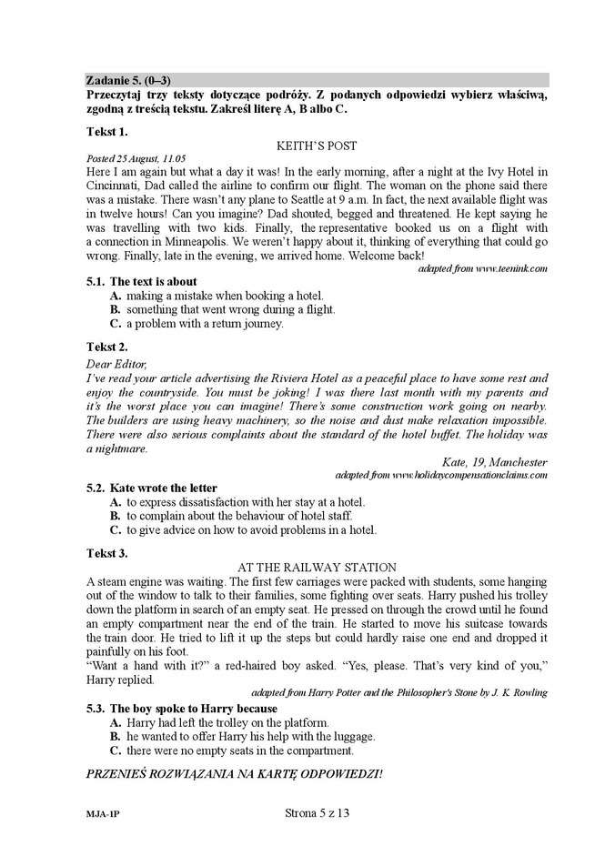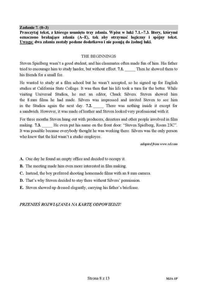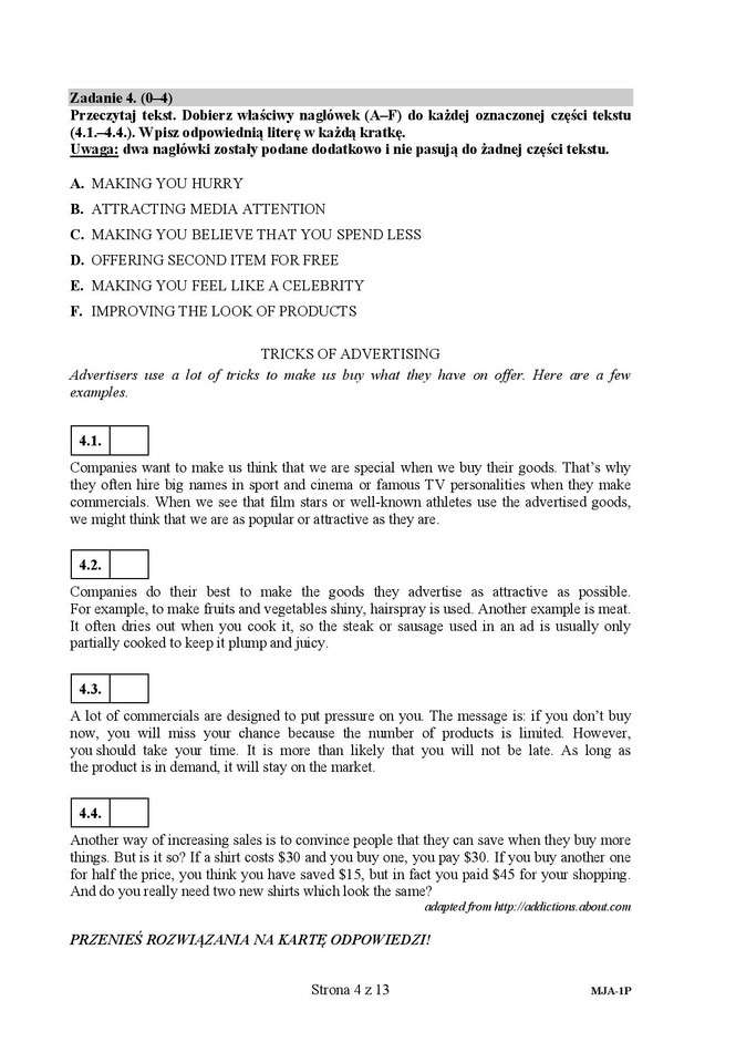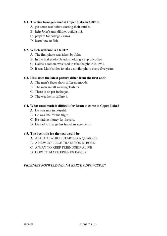 Matura 2016 ANGIELSKI ARKUSZ (poziom podstawowy)