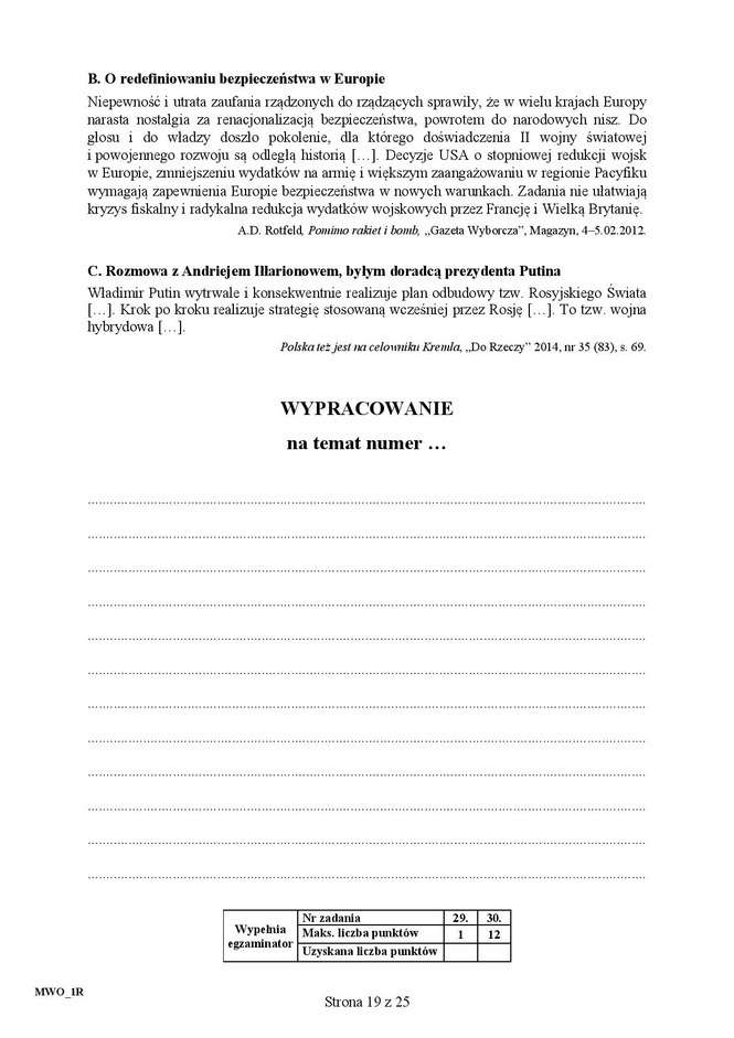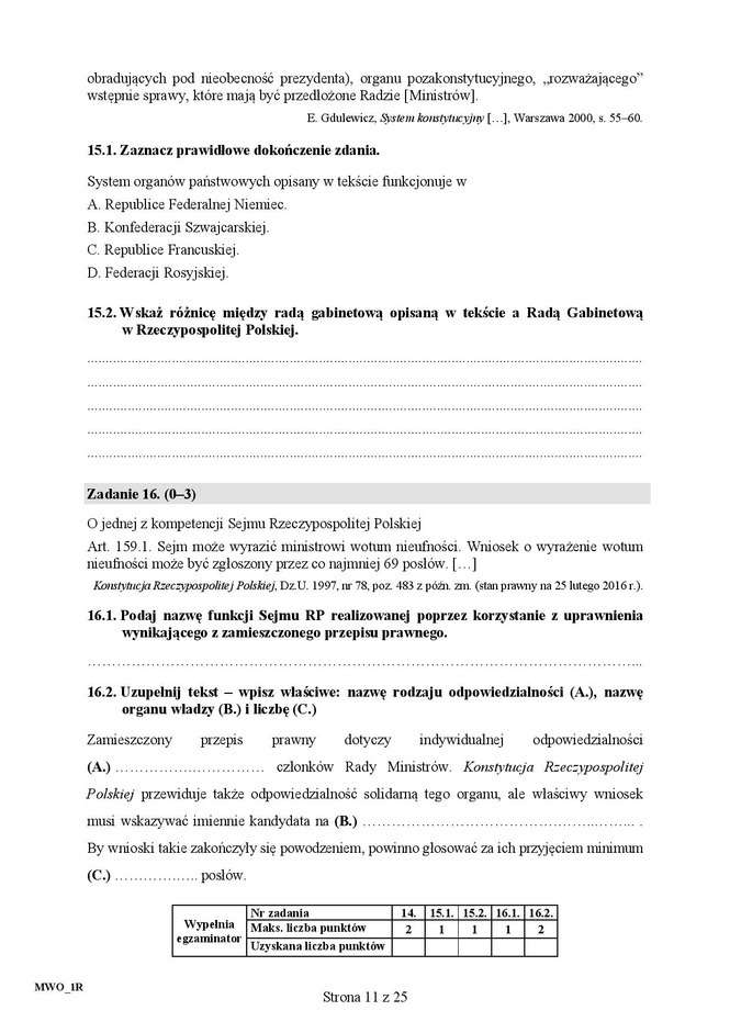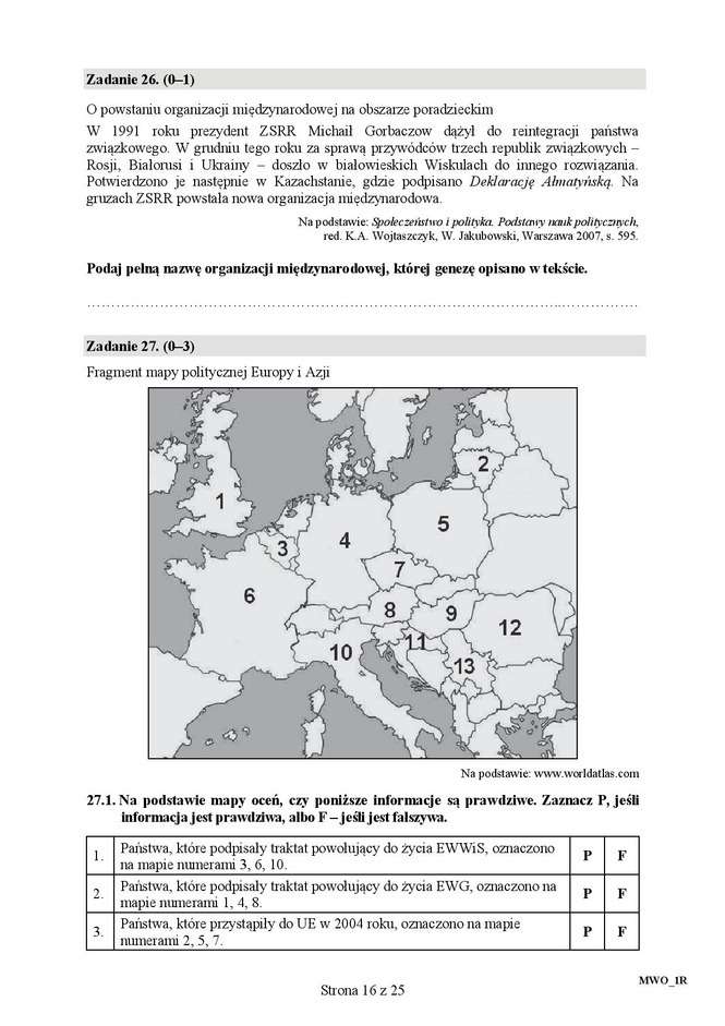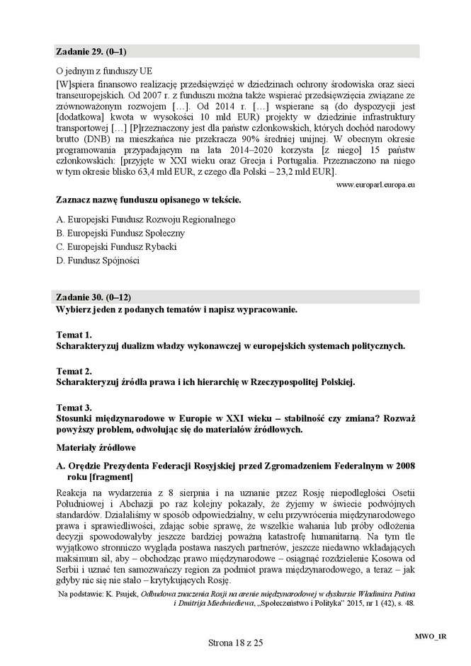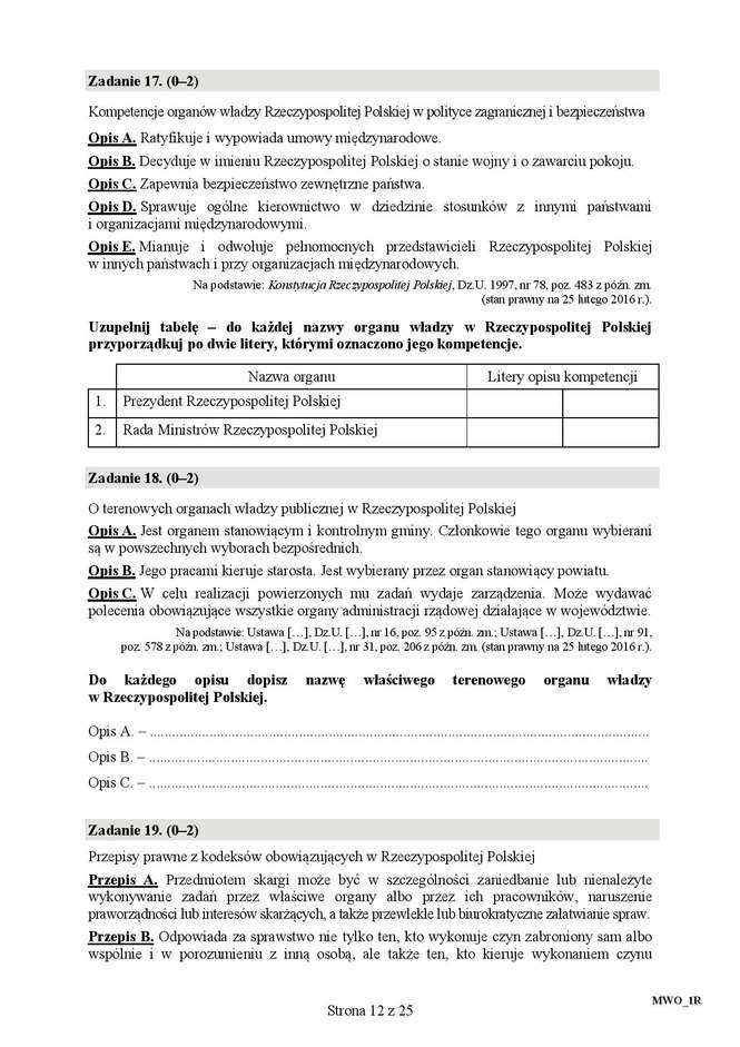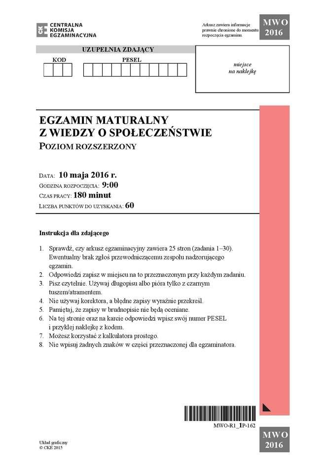 Matura 2016: WOS rozszerzony - ARKUSZ CKE