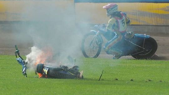 Pożar motocykla podczas Turnieju Zaplecza Kadry Juniorów w Lublinie