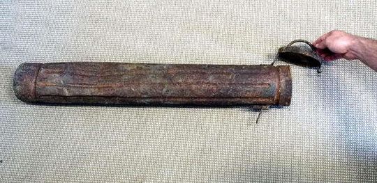 Tuba UPA, w której schowano propagandowe pisma, ulotki i plakaty