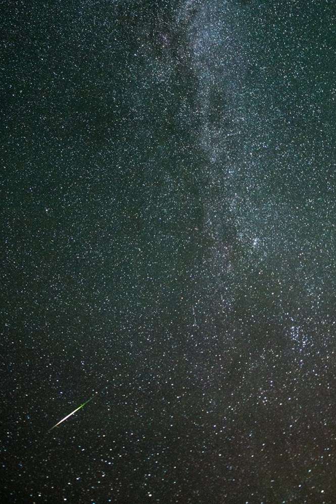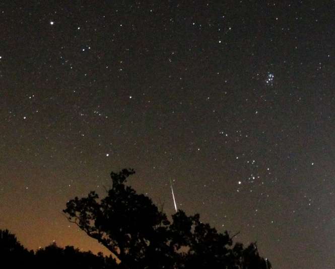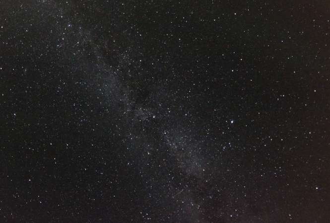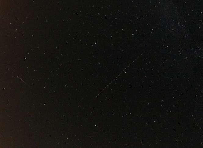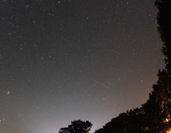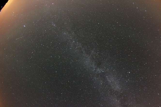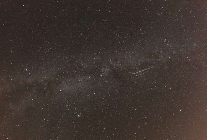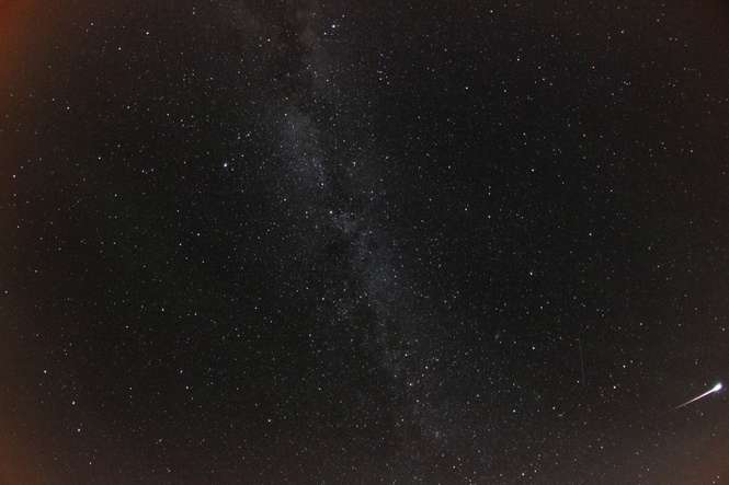 Jeden ze złapanych perseidów na Mazurach. Okolice Jedwabno, za wsią Szuć, około 2 rano, piątek 12.08.2016.