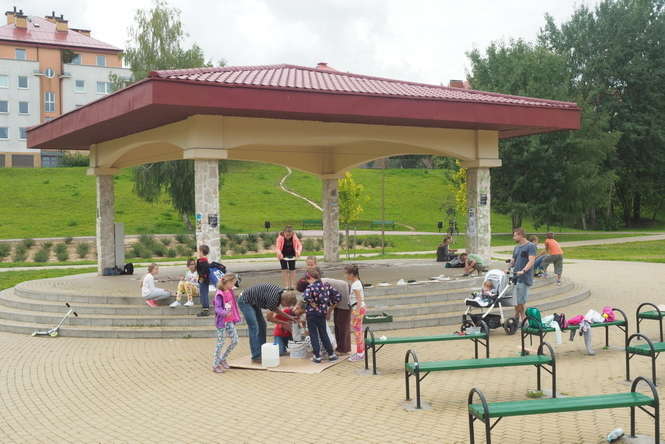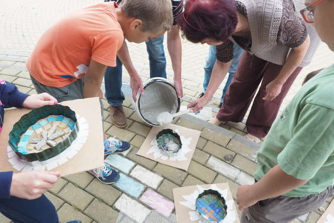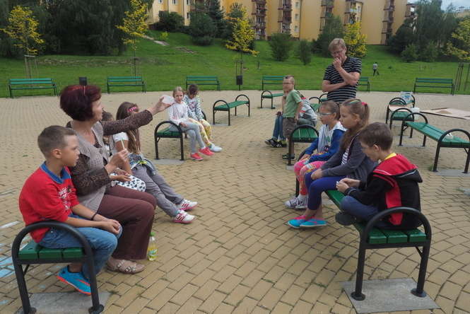 Altana w parku im. Jana Pawła II w wąwozie w osiedlu Widok na Czubach zamienia się w pracownię plastyczną. Trwają tu warsztaty dla dziecię między 8 a 12 rokiem życia. Prowadzi je pani Renata Kiełbińska, która od wielu lat przekazuje dzieciom i młodzieży wiedzę z zakresu rękodzieła artystycznego oraz plastyki.