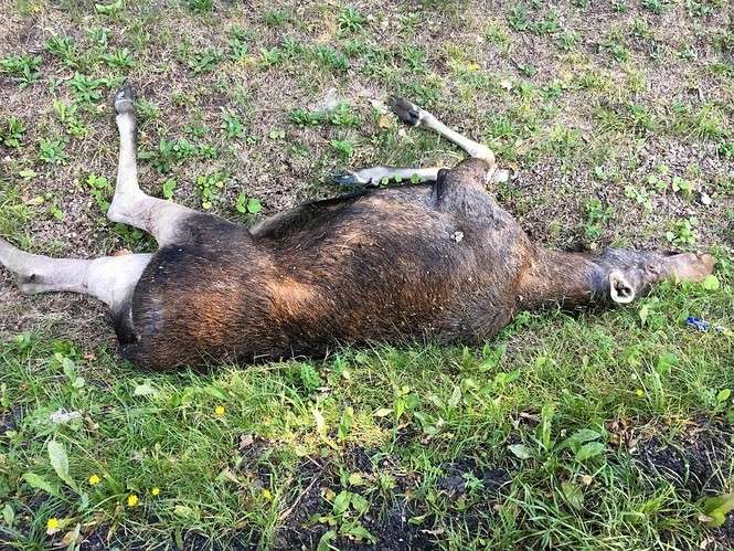 Żerdź. Ciężarówka zderzyła się z łosiem