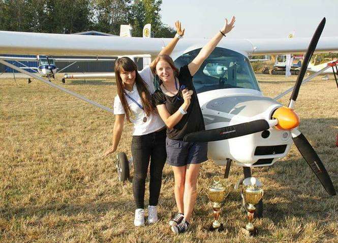 Agata i Zosia Garwacka (startują razem w zawodach). Na zdjęciu pierwszy wspólny start w zawodach i 3 miejsce w Mistrzostwa Polski w Rajdowych Samolotowych Zawodach - Katowice 2015