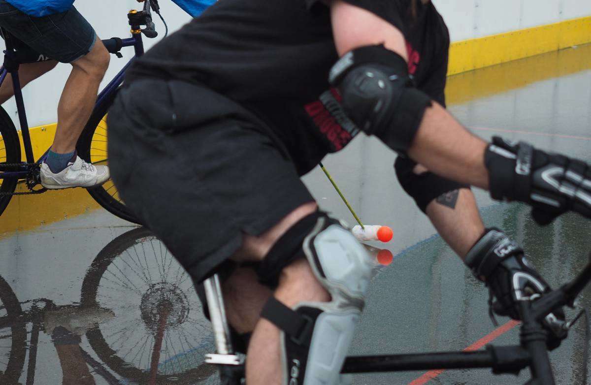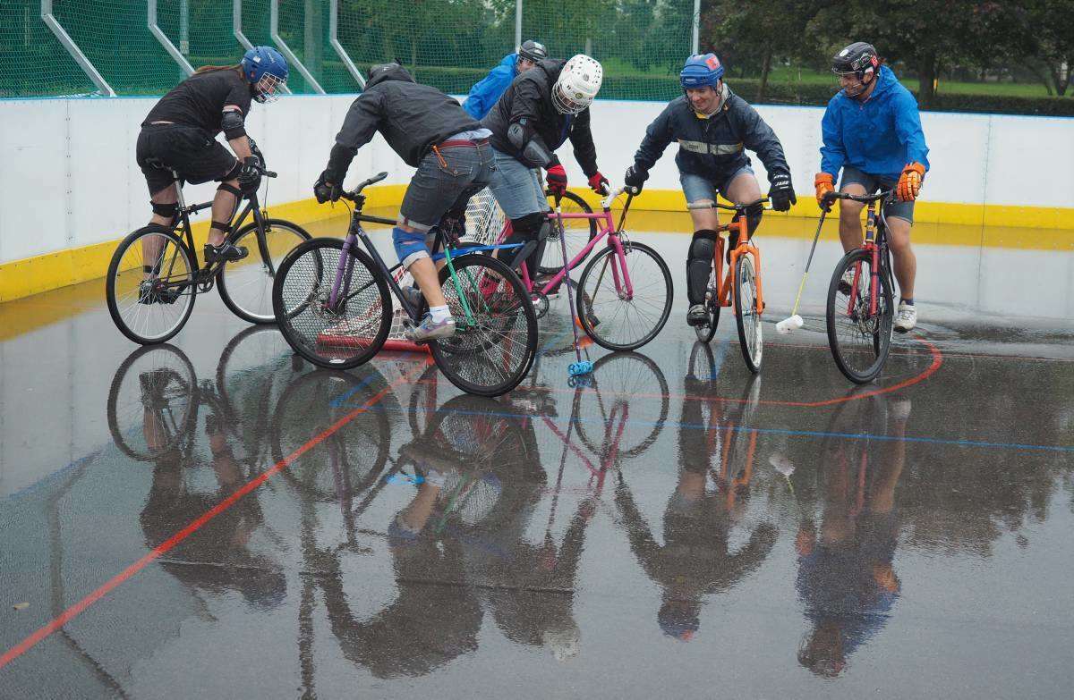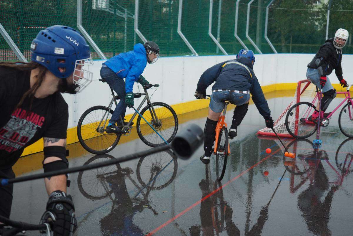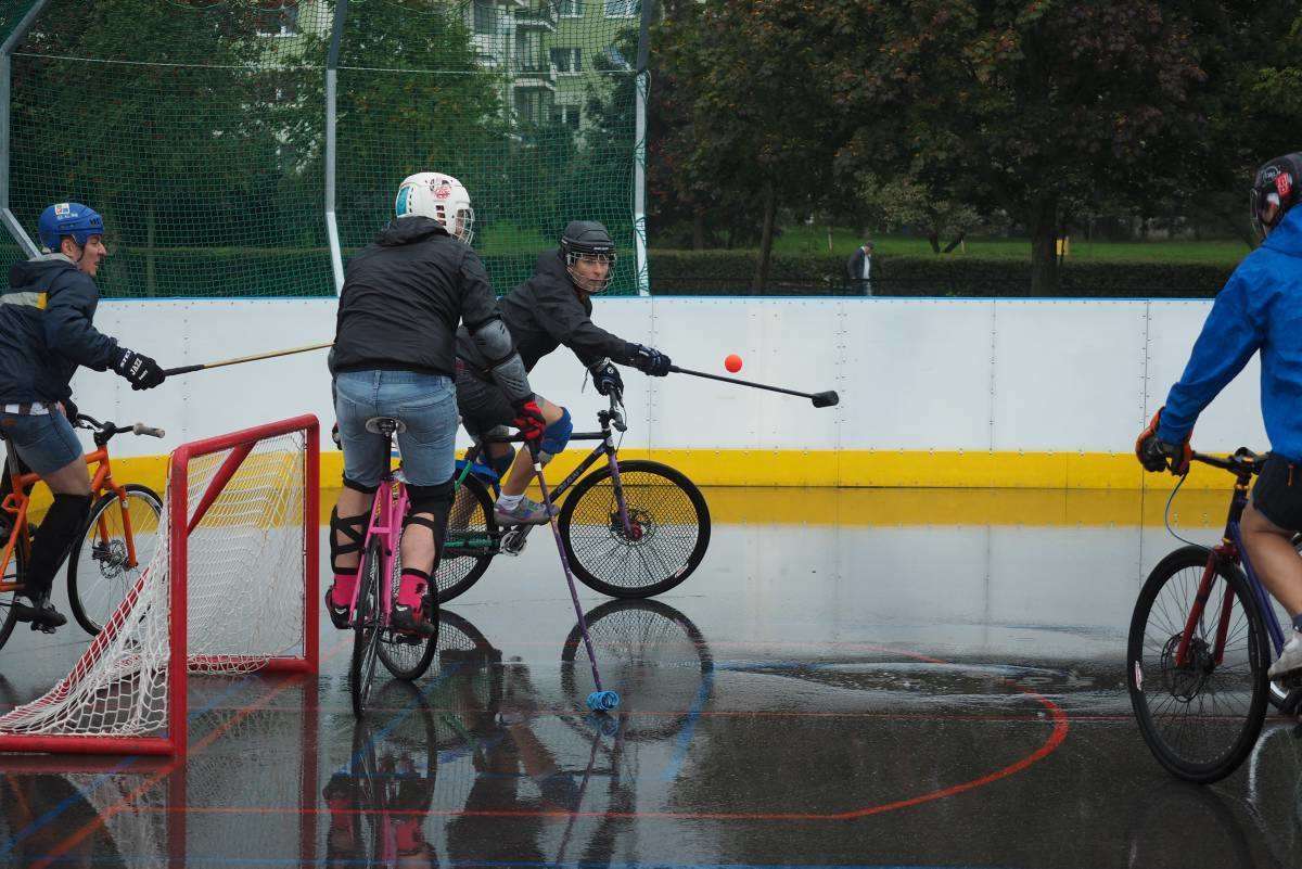 W Lublinie odbywają się 7. Mistrzostwa Polski Bike Polo. Uczestnicy rozgrywek zamiast na koniach, jeżdżą na rowerach. Mecze odbywają się na betonowym boisku przy Szkole Podstawowej nr 43 im. I.J. Paderewskiego. Fot. Maciej Kaczanowski