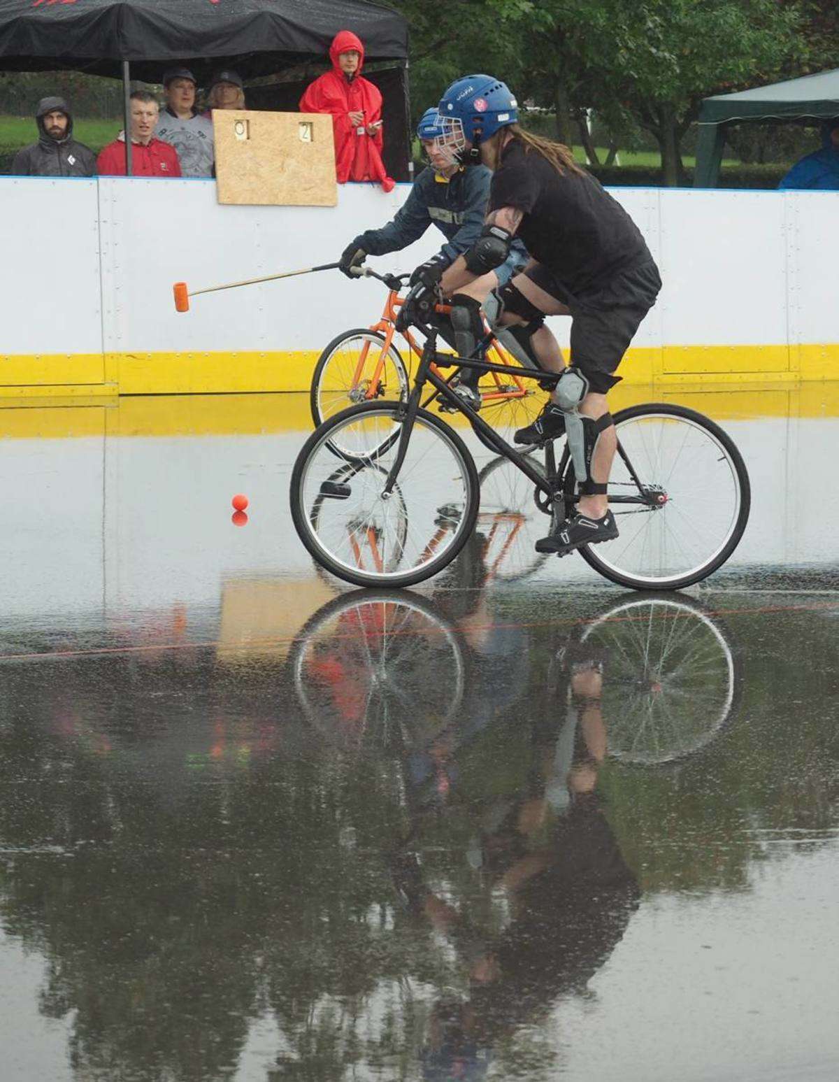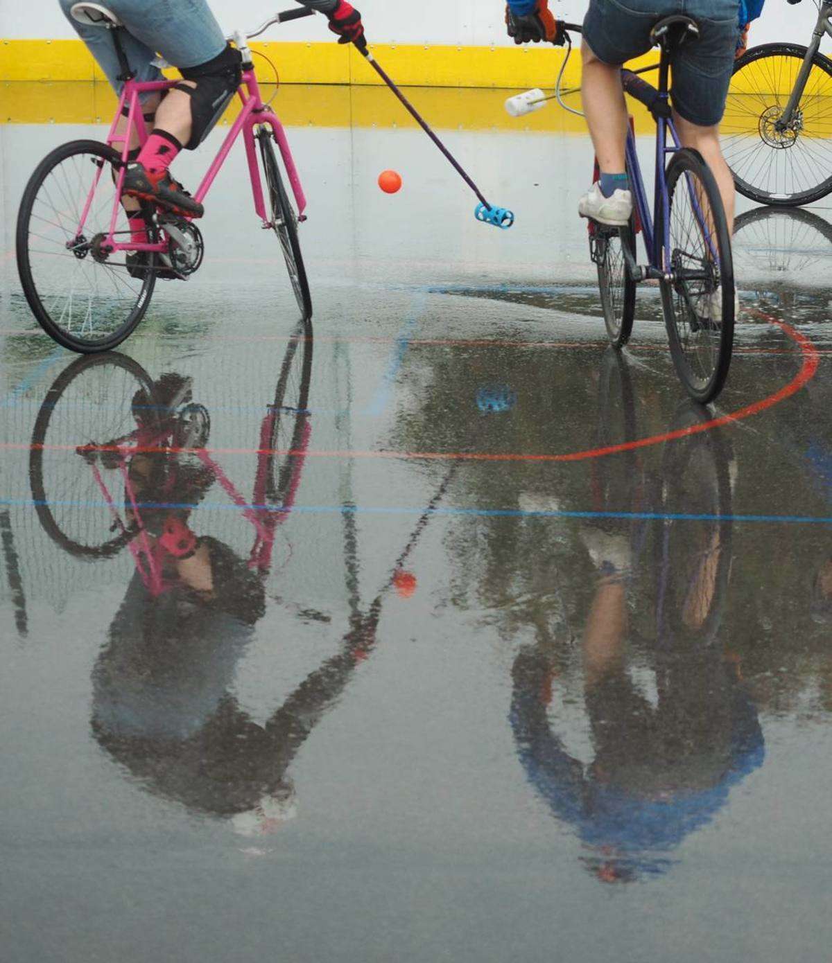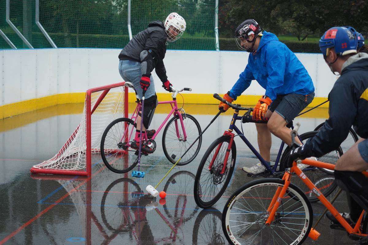 W Lublinie odbywają się 7. Mistrzostwa Polski Bike Polo. Uczestnicy rozgrywek zamiast na koniach, jeżdżą na rowerach. Mecze odbywają się na betonowym boisku przy Szkole Podstawowej nr 43 im. I.J. Paderewskiego. Fot. Maciej Kaczanowski