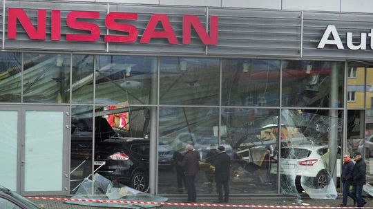 Zawaliła się część dachu na salonie samochodowym Nissana