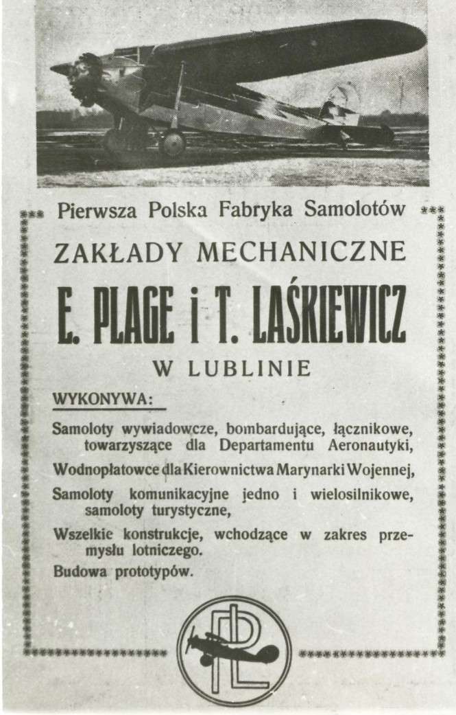 Emil Plage i Teofil Emeryk Laśkiewicz zaczynali jako właściciele warsztatu mechanicznego i budowy kotłów. W 1920 roku podjęły produkcję samolotów jako pierwsze zakłady w odrodzonej Polsce. Zakłady mieściły się przy ul. Fabrycznej 26 i zajmowały powierzchnię 13 ha. W roku 1921 zatrudniały około 500 pracowników
