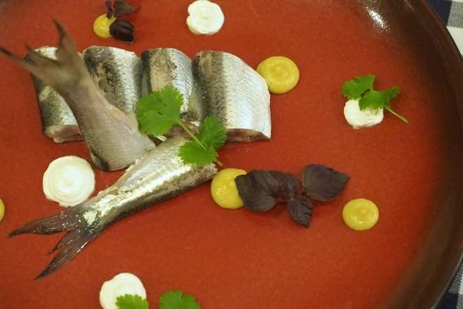 Wykonanie: filety moczyć w wodzie 6 godzin. Podzielić na kawałki. Z wody, octu, cukru i przypraw zrobić zalewę. Zalać śledzie, odstawić na kilka dni. Śmietanę połączyć ze śliwowicą. Zmiksować ogórek, pieczarkę i musztardę. Wyłożyć śledzie na półmisek, ozdobić emulsją z ogórka oraz śmietaną. (Szymon Boguta)