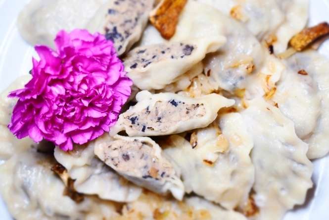 Pierogi faszerowane śliwkami i orzechami ze śmietaną