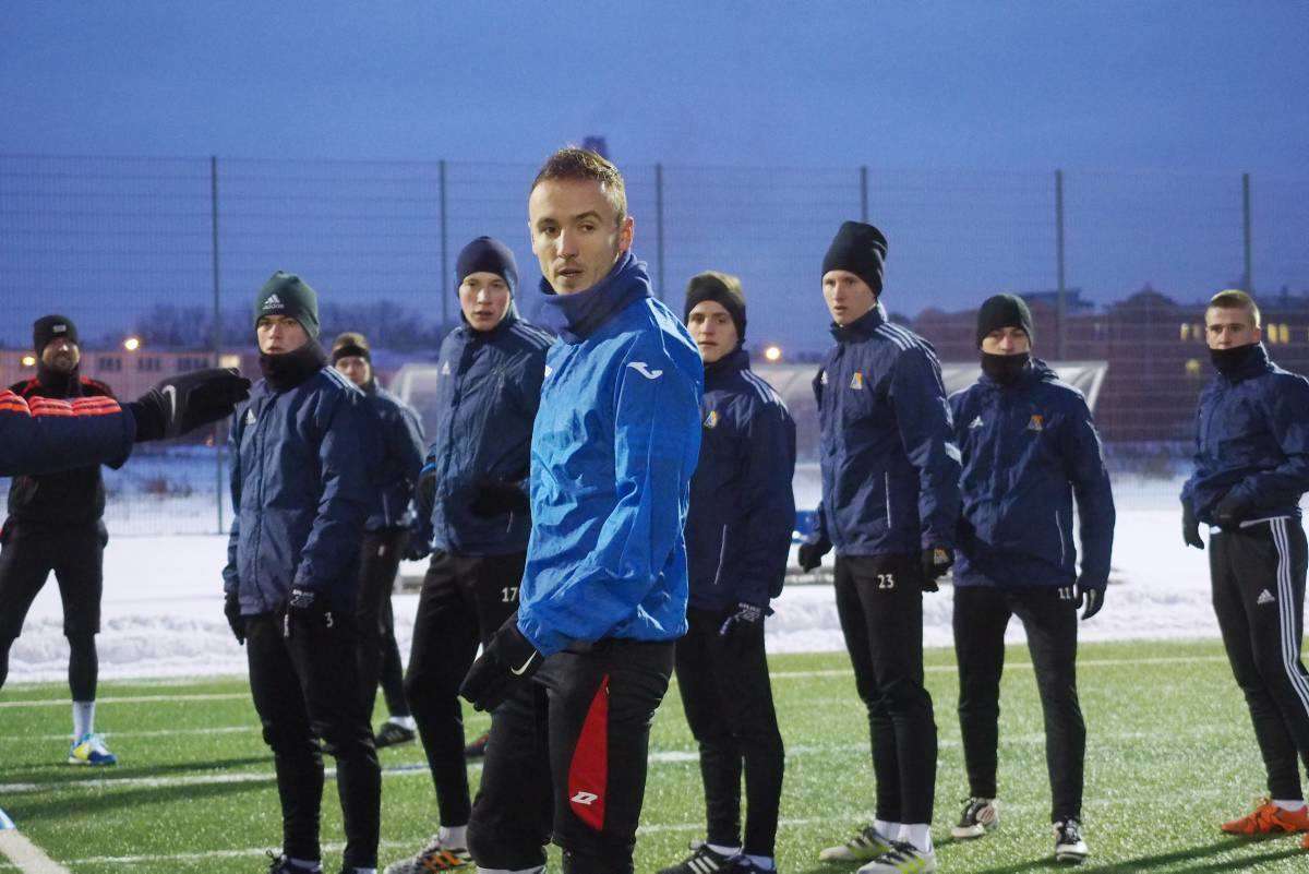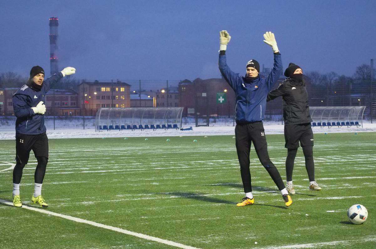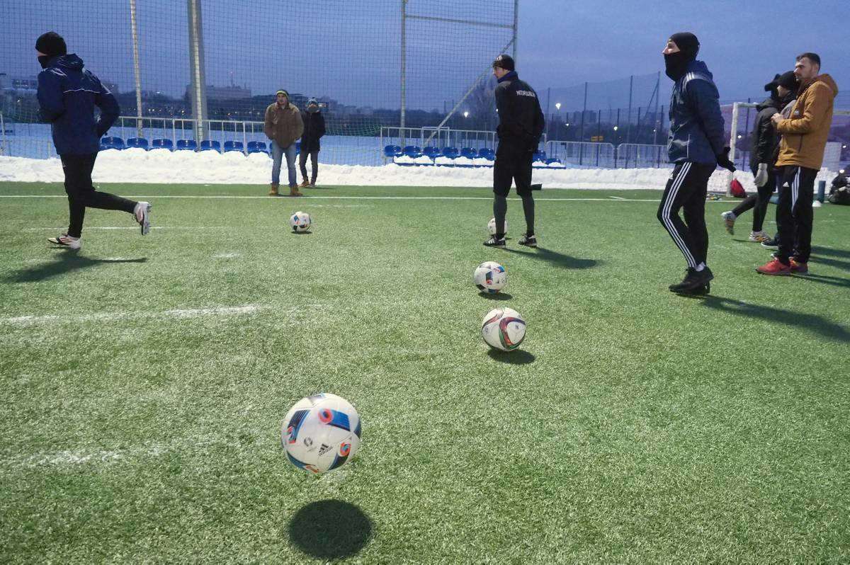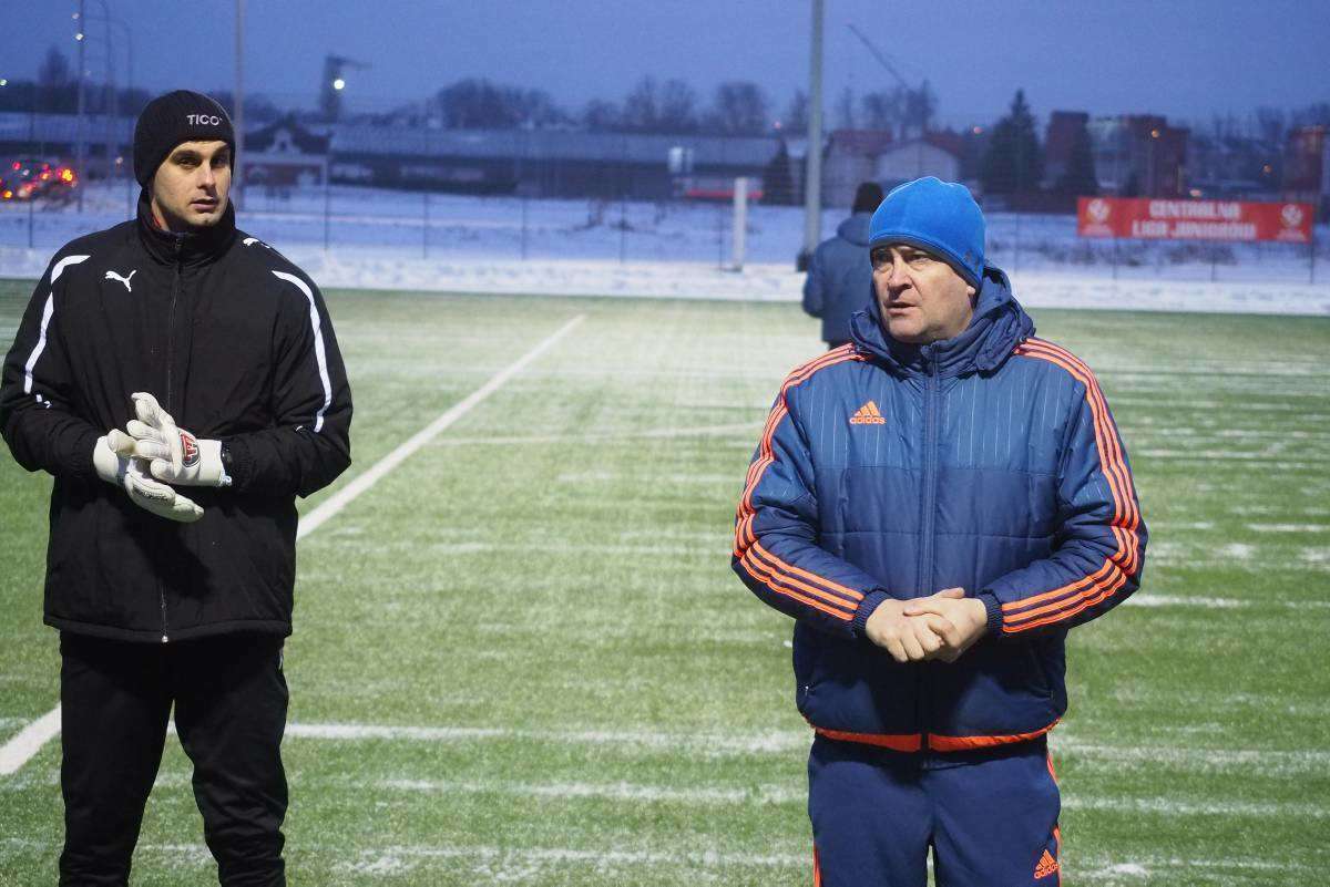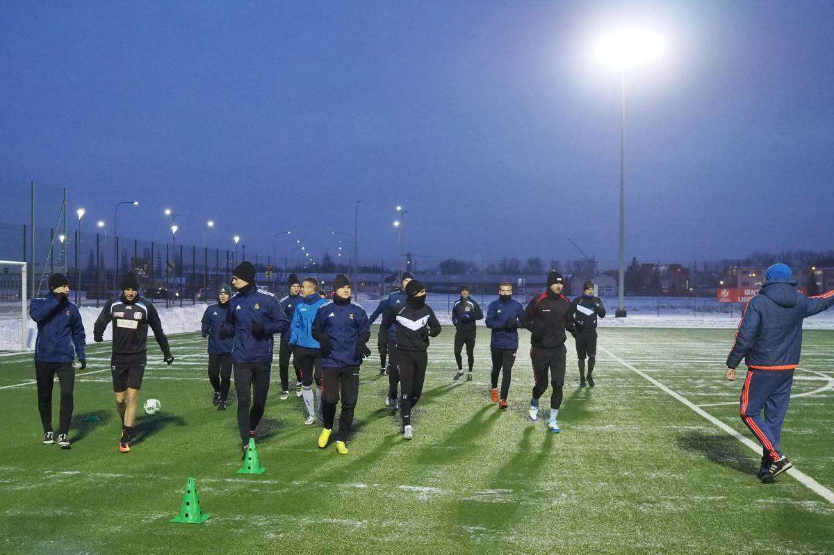 Pierwszy raz w tym roku piłkarze Motoru wybiegli na boczne boisko stadionu Arena. Zajęcia poprowadził Marcin Sasal - nowy trener lubelskiej drużyny. Fot. Maciej Kaczanowski