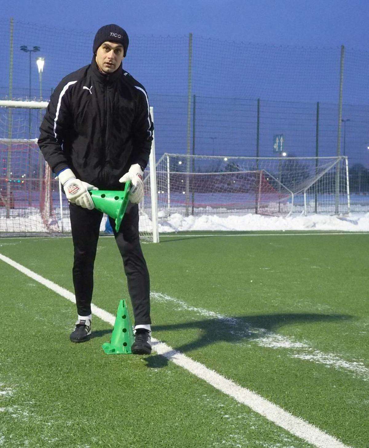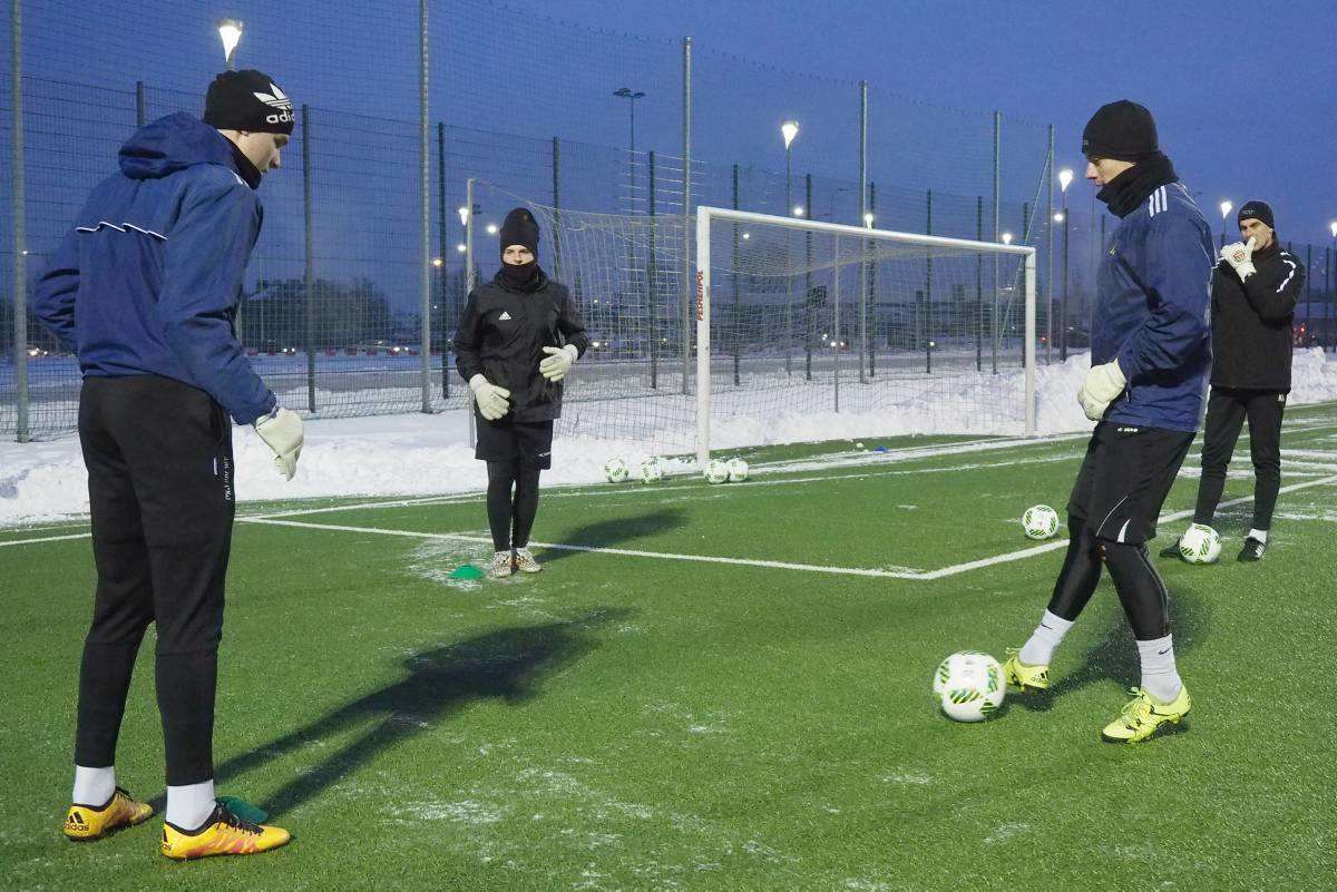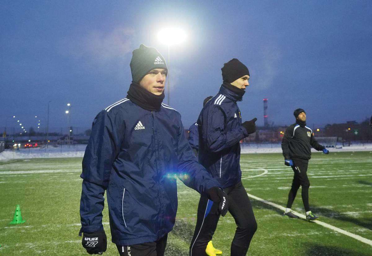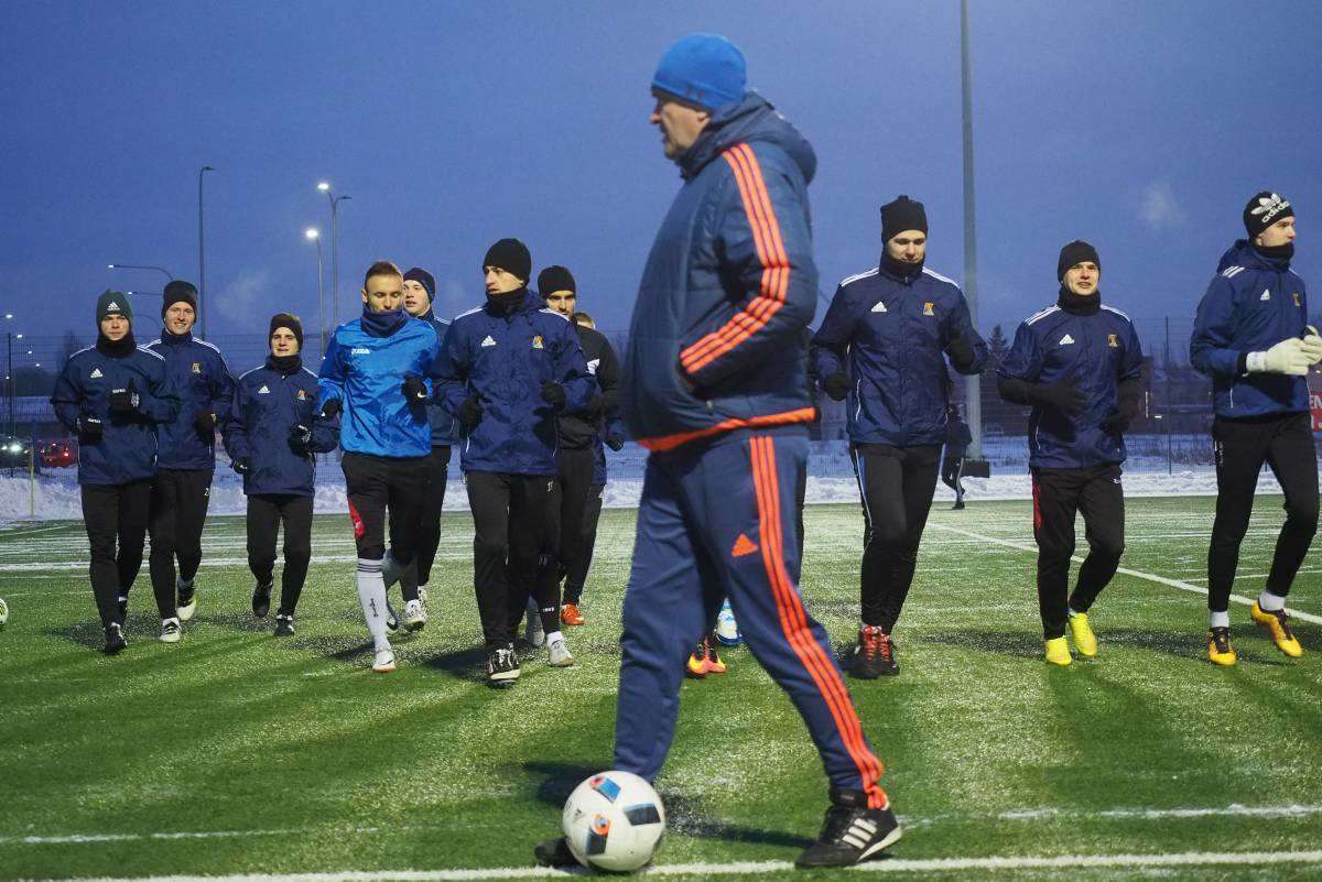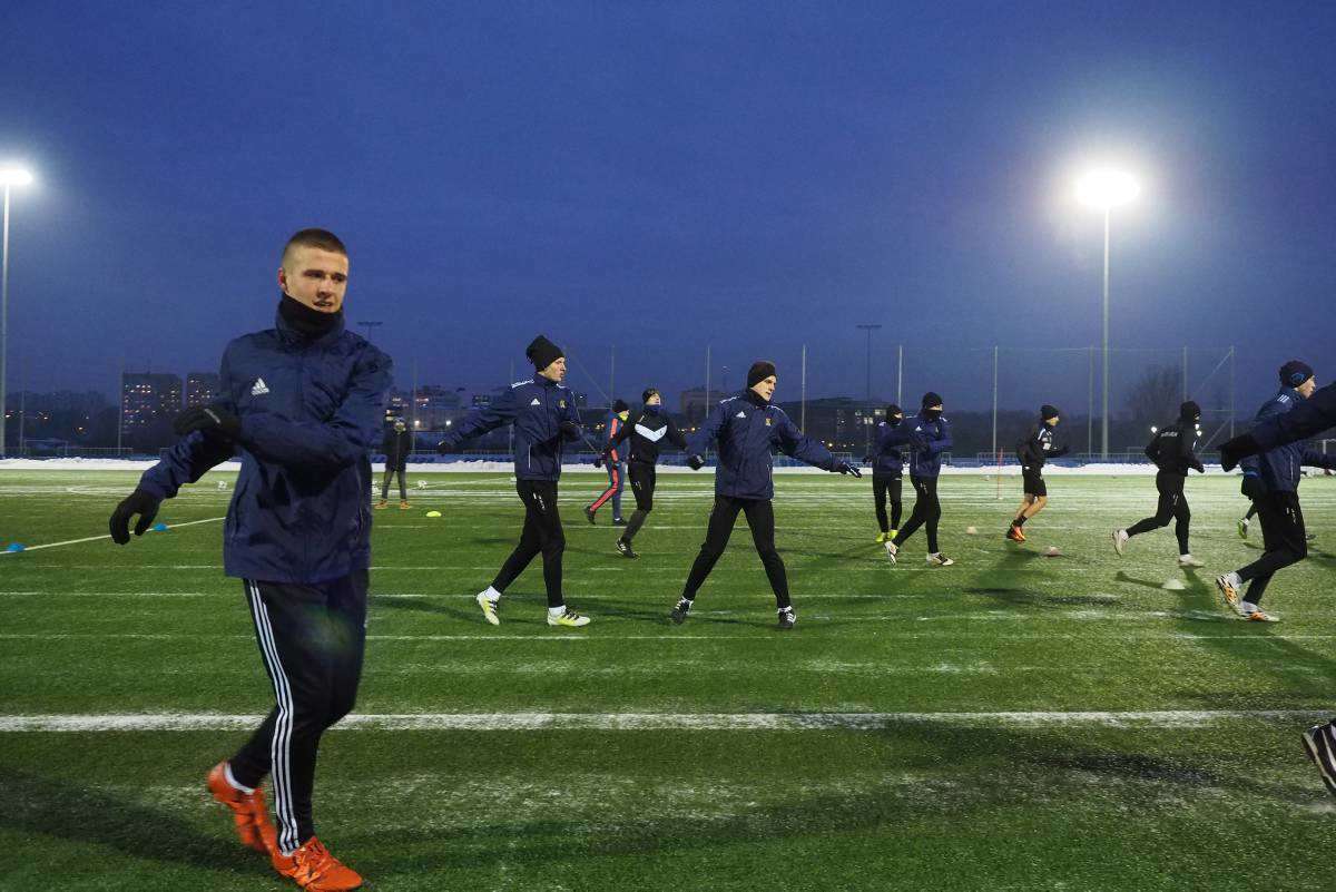 Pierwszy raz w tym roku piłkarze Motoru wybiegli na boczne boisko stadionu Arena. Zajęcia poprowadził Marcin Sasal - nowy trener lubelskiej drużyny. Fot. Maciej Kaczanowski