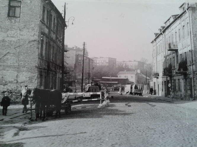 Z opakowań po papierze fotograficznym wyłania się budowa ulicy Ruskiej, fachowcy w kufajkach na rondzie przed ratuszem, pole za szpitalem przy ul. Jaczewskiego, które będzie al. Smorawińskiego, koniec świata w błocie, czyli zapowiedź ulicy Puławskiej.