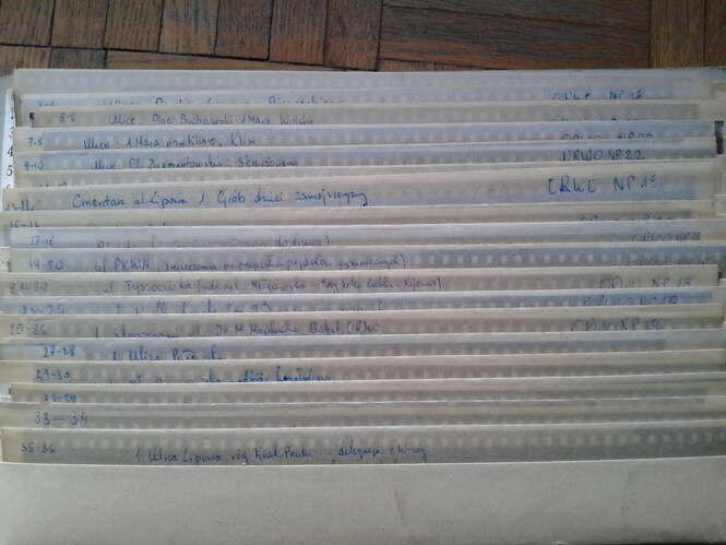 O tym, że Budzyński pracował w Miejskiej Radzie Narodowej, świadczyły pieczątki na odbitkach znalezionych przez państwa Jurkowskich. Ale w aktach w archiwum Urzędu Miasta, gdzie dotarłam szukając fotografa, jest tylko ślad po zatrudnieniu w Miejskim Sztabie Wojskowym na stanowisku kreślarza. Pomysł, że do autora fotografii da się dotrzeć idąc pod ówczesny adres, okazał się kiepski. Pan Marian mieszkał przy ulicy Drobnej.