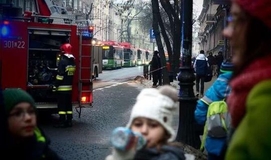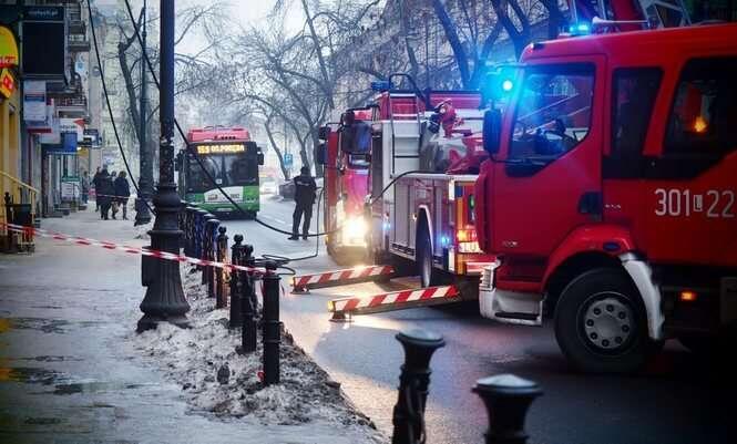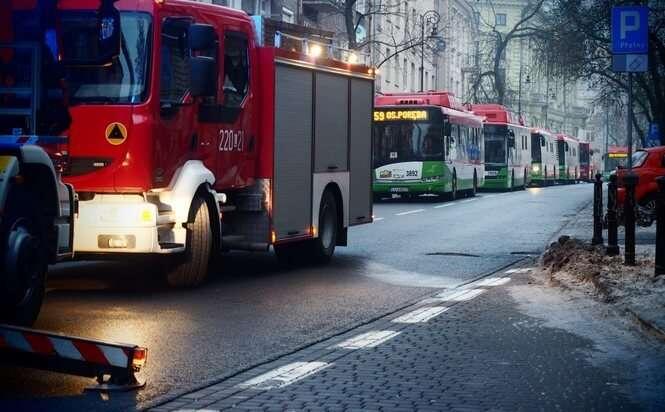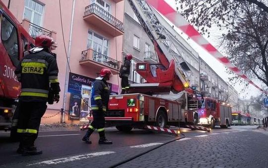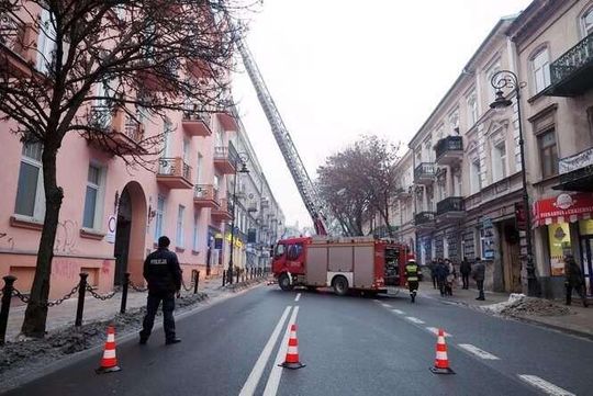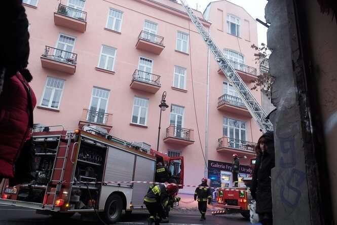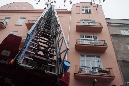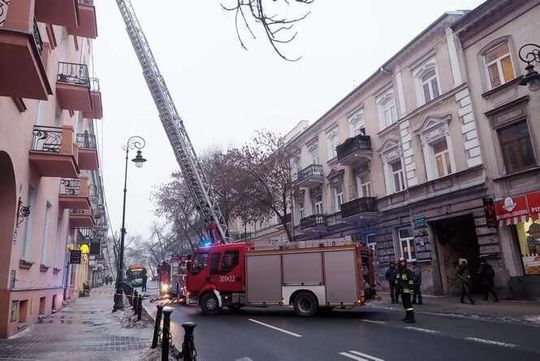 Ul. Narutowicza: Pożar sadzy w kominie kamienicy